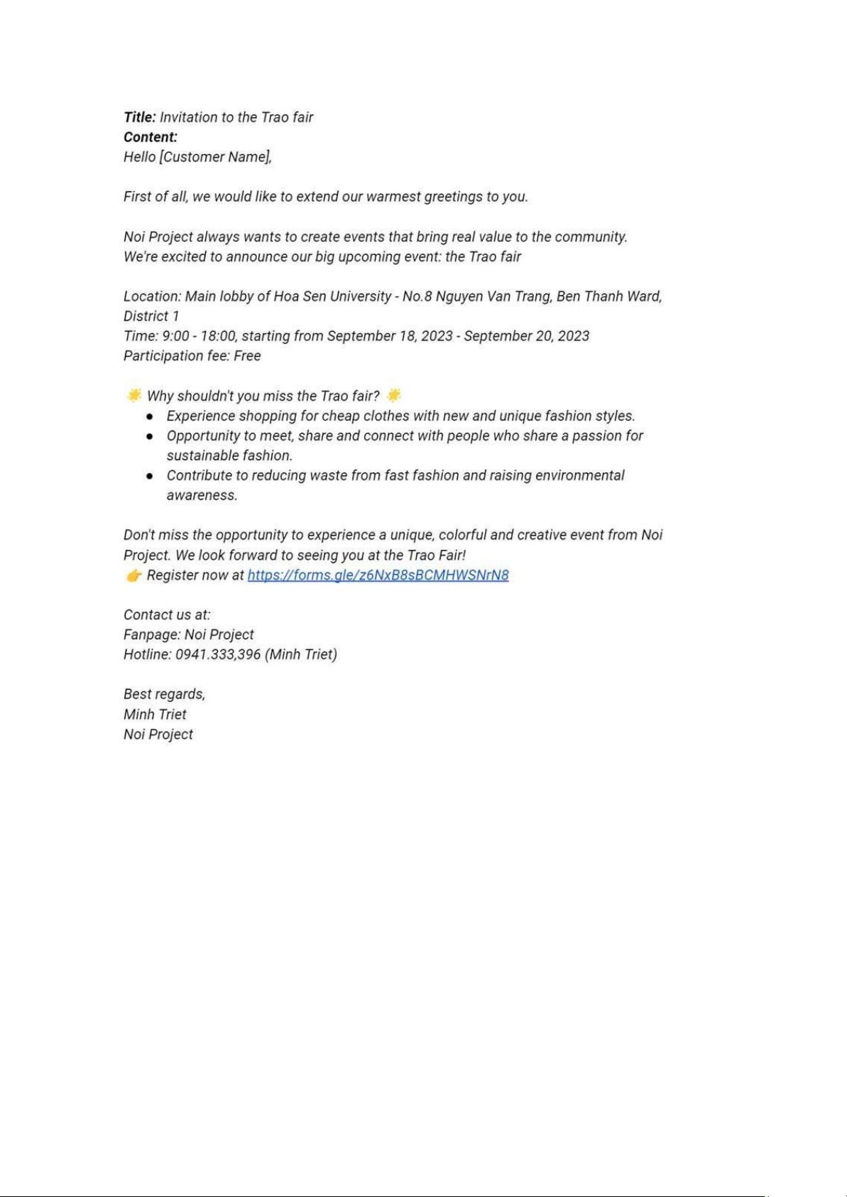 Email marketing invitation to attend the fair 17 lOMoAR cPSD| 47206071