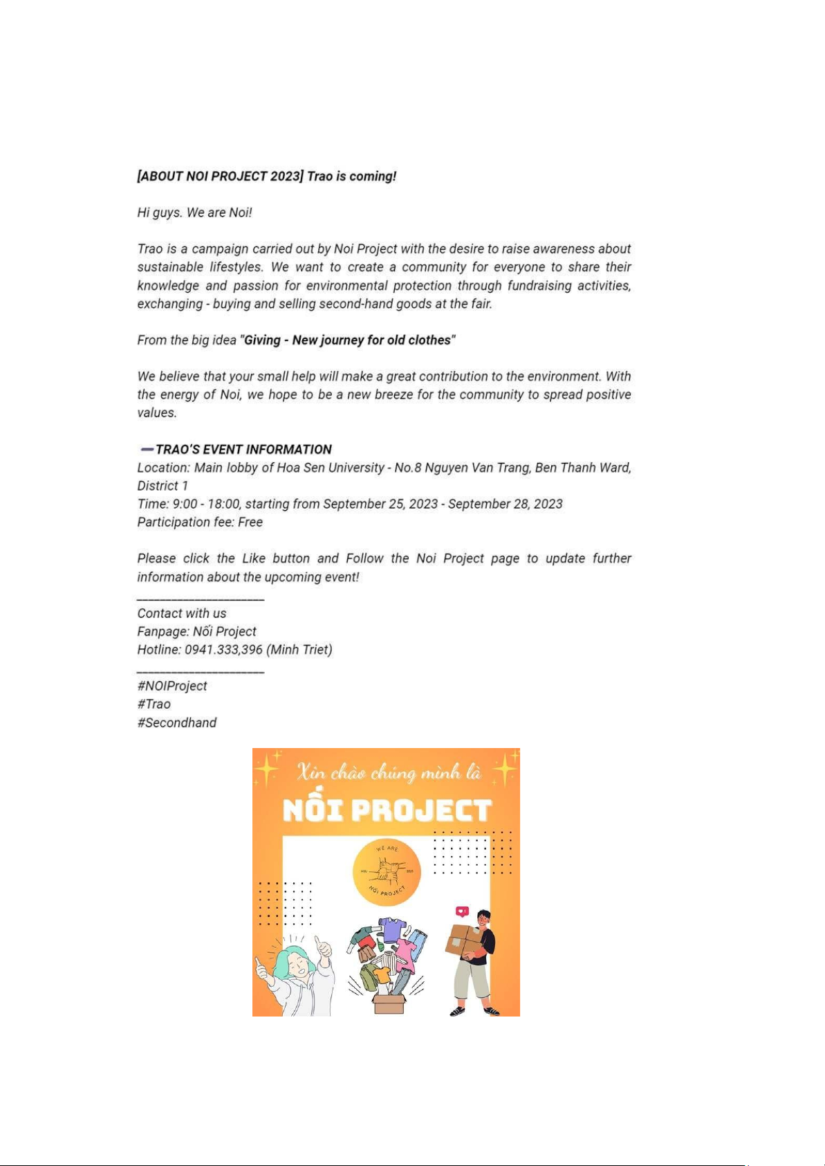 Noi or Noi Project is a fundraising project implemented by Hoa Sen student group in 2023. Noi towards