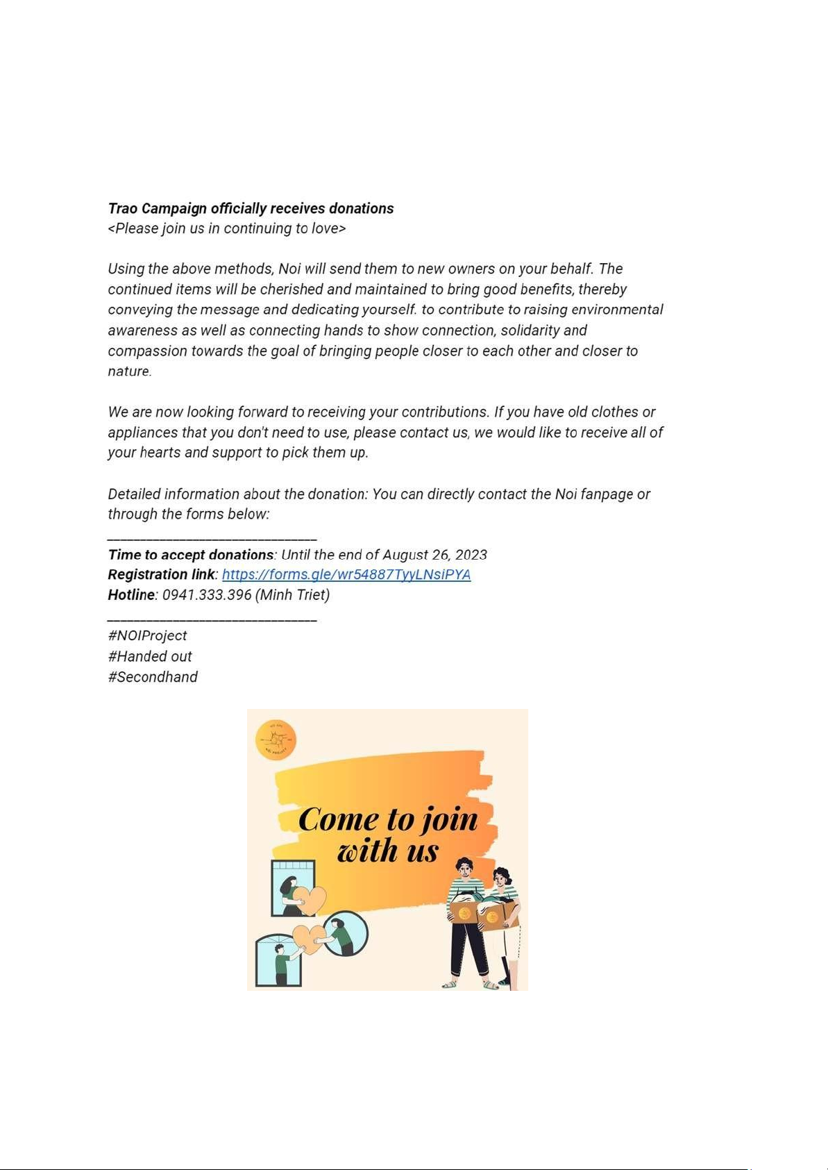 generation of young people. Noi wants to build a campaign called Trao with the idea of "Trao Fair" to