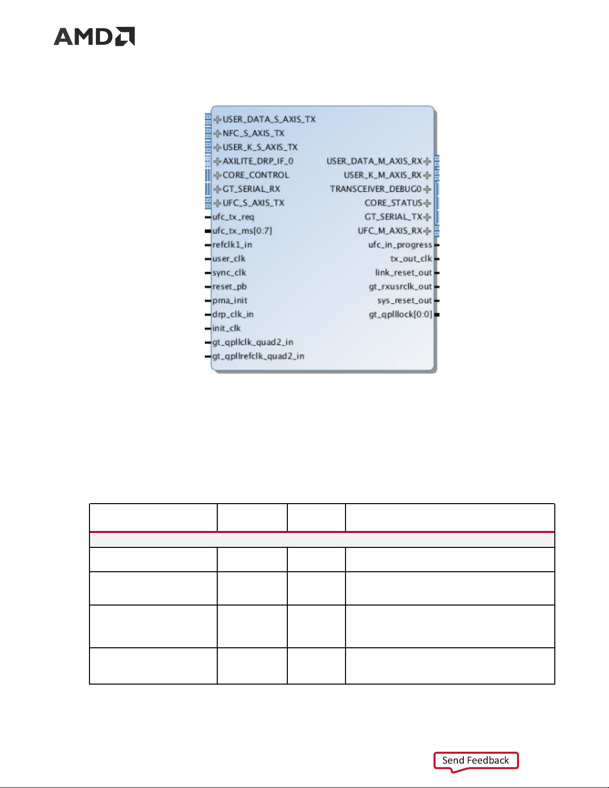 AMD UltraScale+™ GTH/GTY, or AMD Versal™ GTY/GTYP/GTM (NRZ line rate) transceivers.
