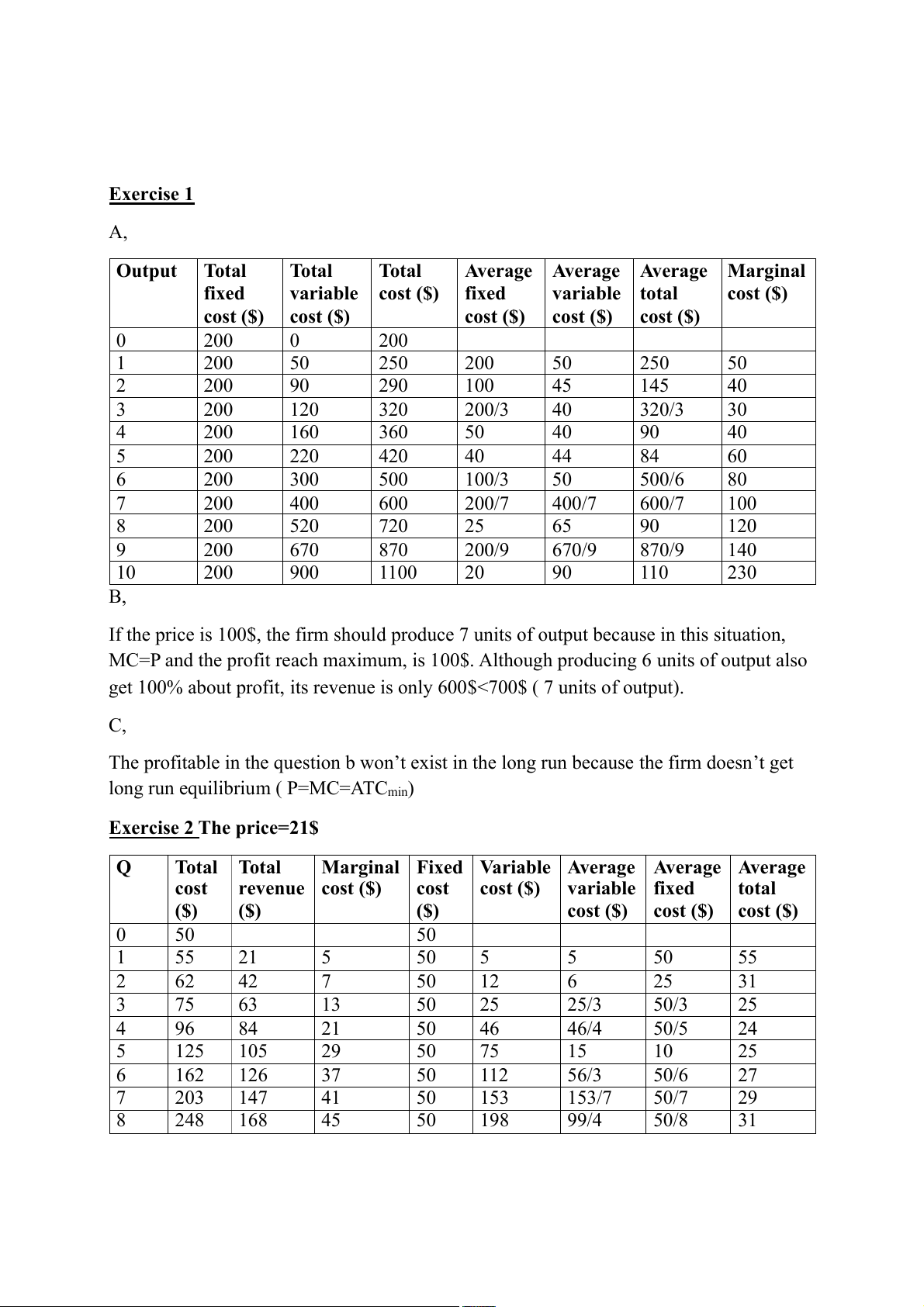 words make up for it get a portion of fixed costs spent. Exercise 3 1. TR=8Q MR=(TR)’=(8Q)’=8