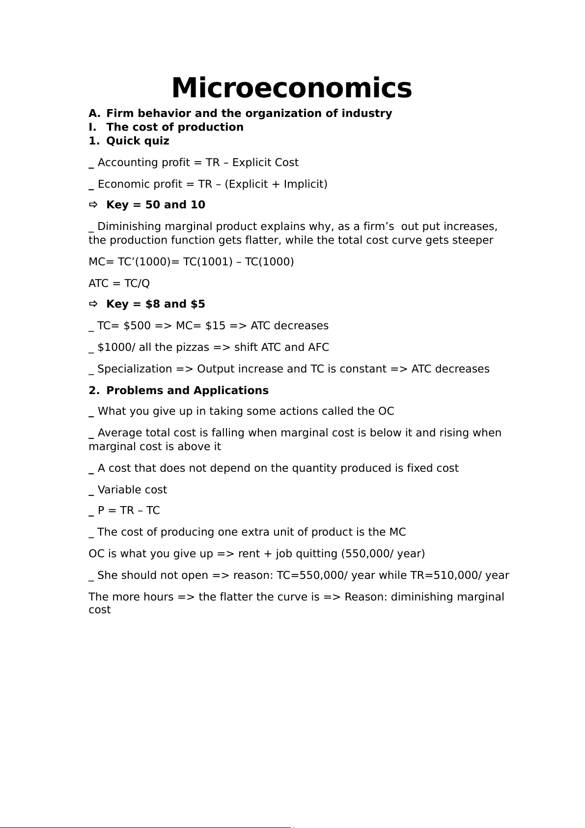 A. Firm behavior and the organization of industry I. The cost of production 1. Quick quiz