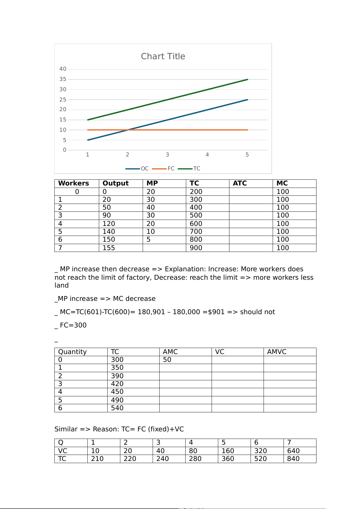 _ MC=TC(601)-TC(600)= 180,901 – 180,000 =$901 => should not _ FC=300 _ Quantity TC AMC VC AMVC 0 300 50 1 350 2 390 3 420 4 450 5 490 6 540