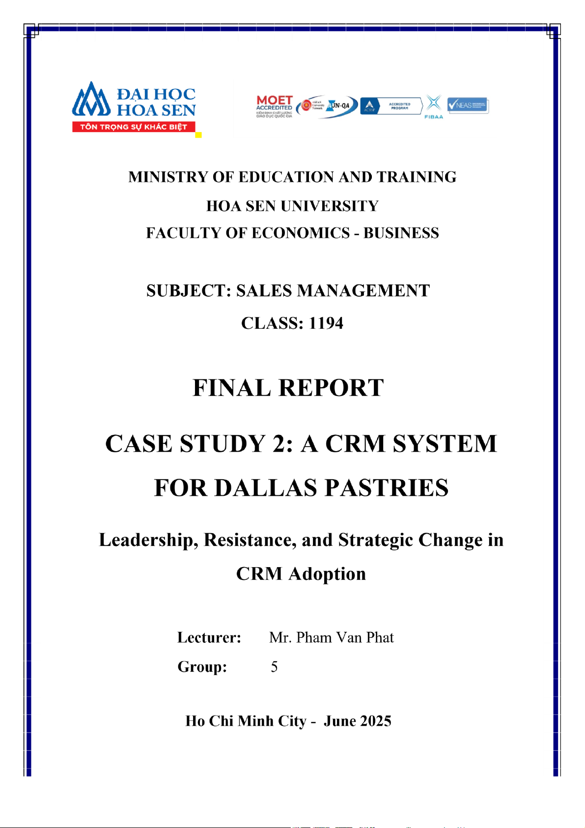 Change in CRM Adoption.” Throughout the semester, Mr. Phát not only equipped us