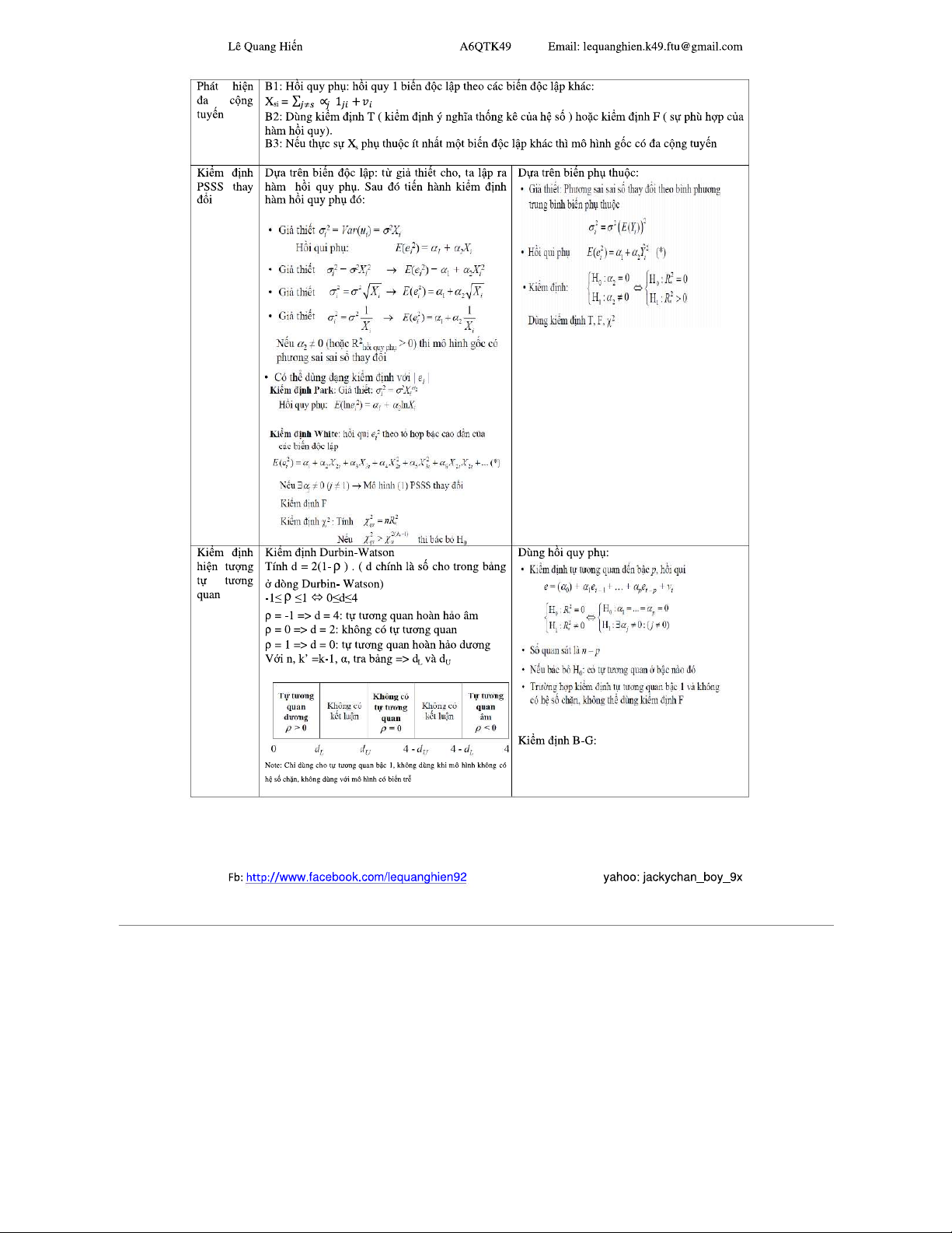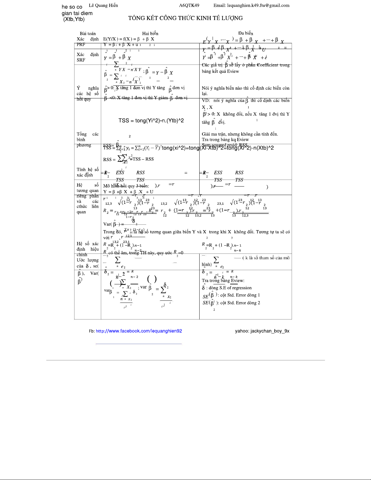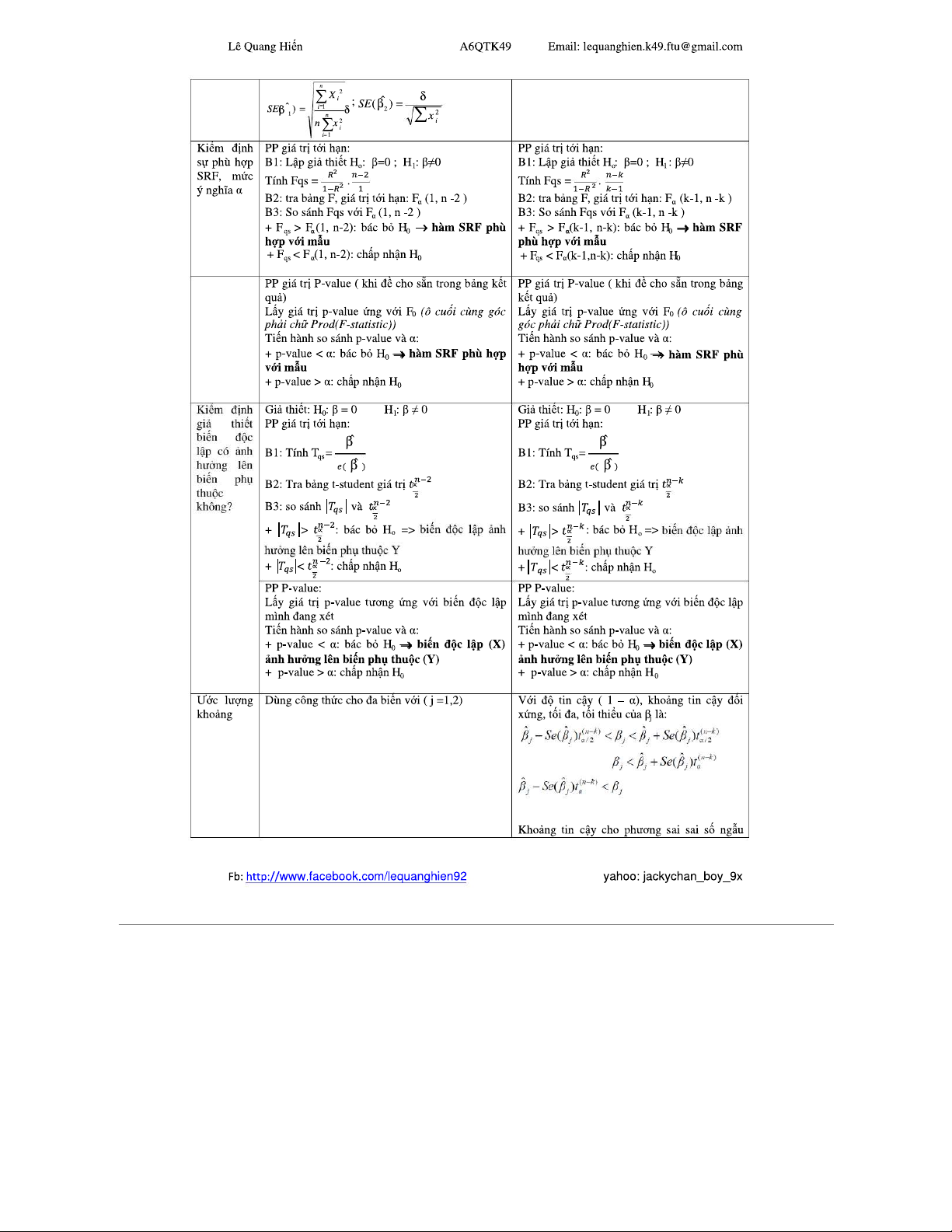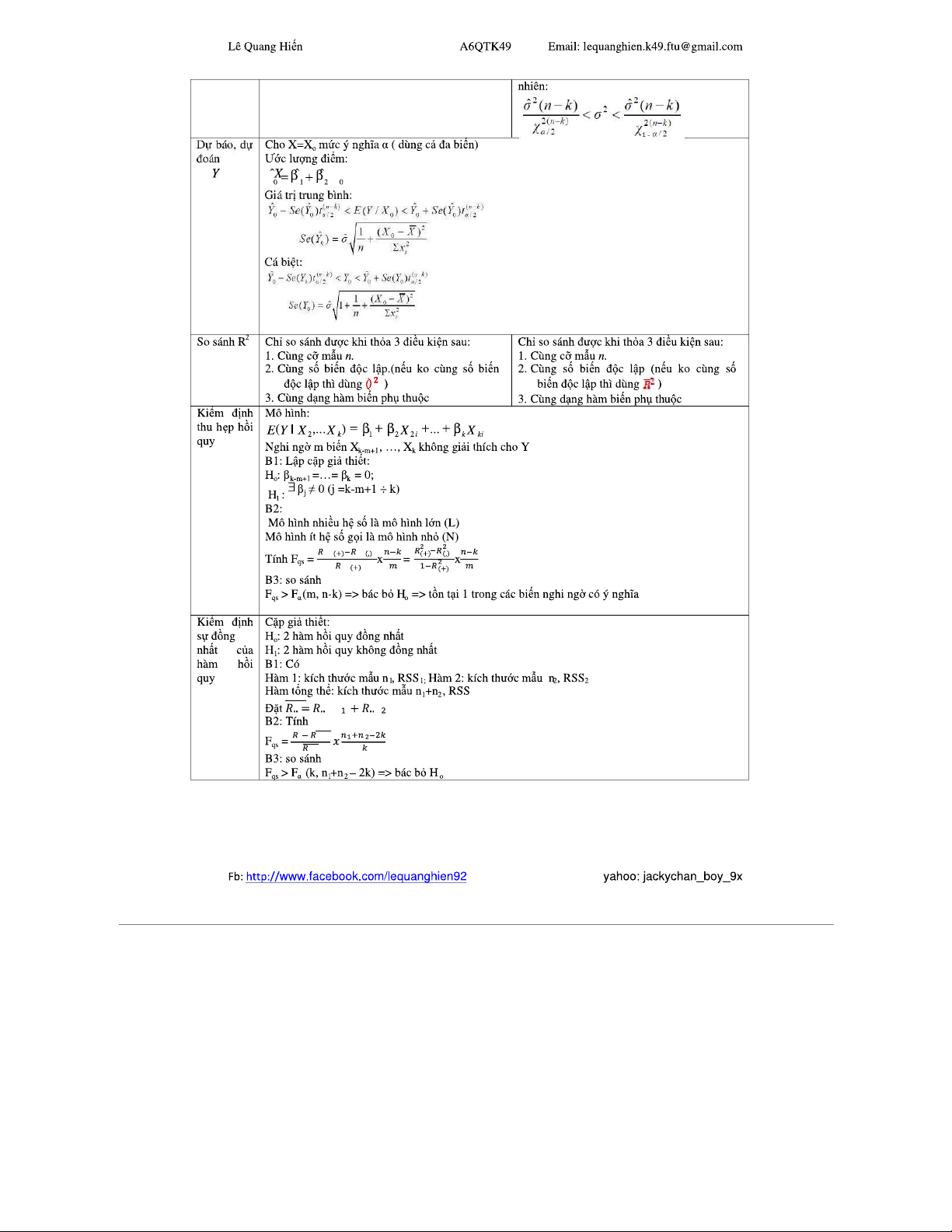 CT KTL - Công Thức Kinh Tế Lượng: Hồi Quy, Kiểm Định, Dự Báo