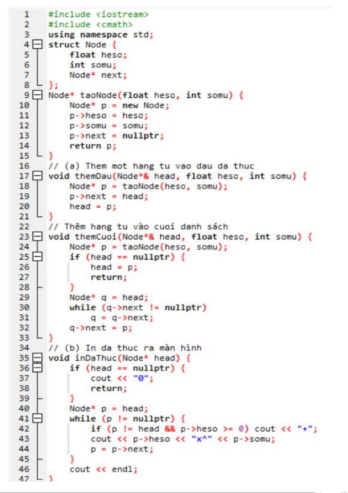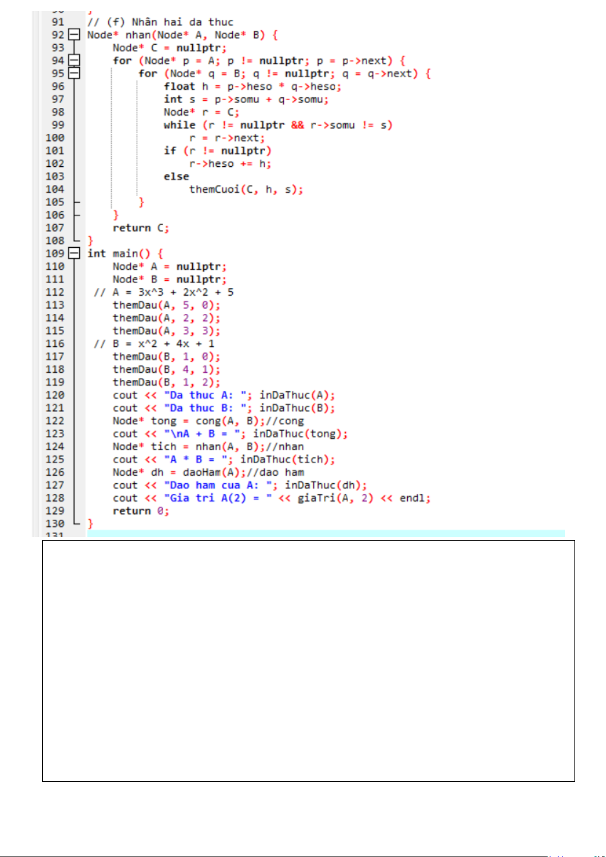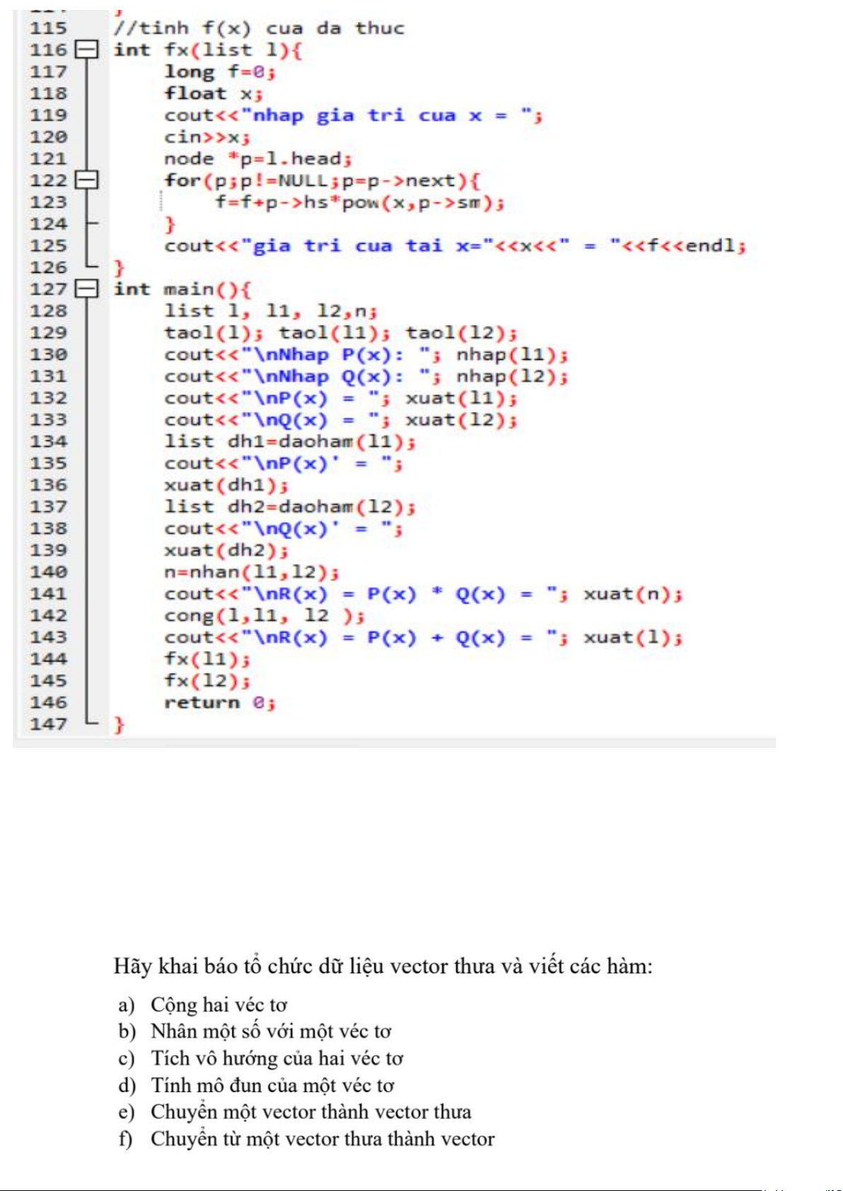 a, nhập đa thức với bậc bất kì b,cộng 2 đa thức c,đạo hàm đa thức d,nhân 2 đa thức