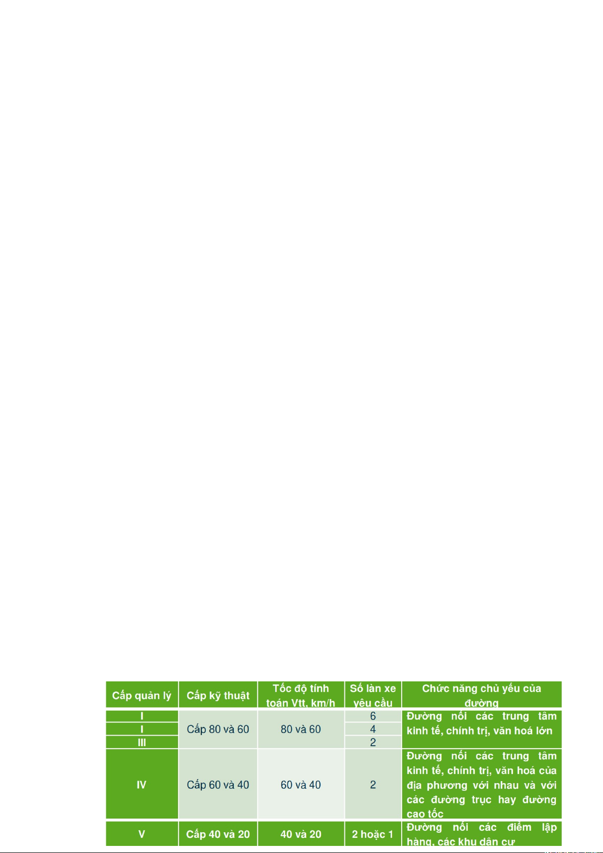 + Theo tiêu chuẩn TCVN 4054-98, cấp quản lý đường bộ được chia thành 5 cấp