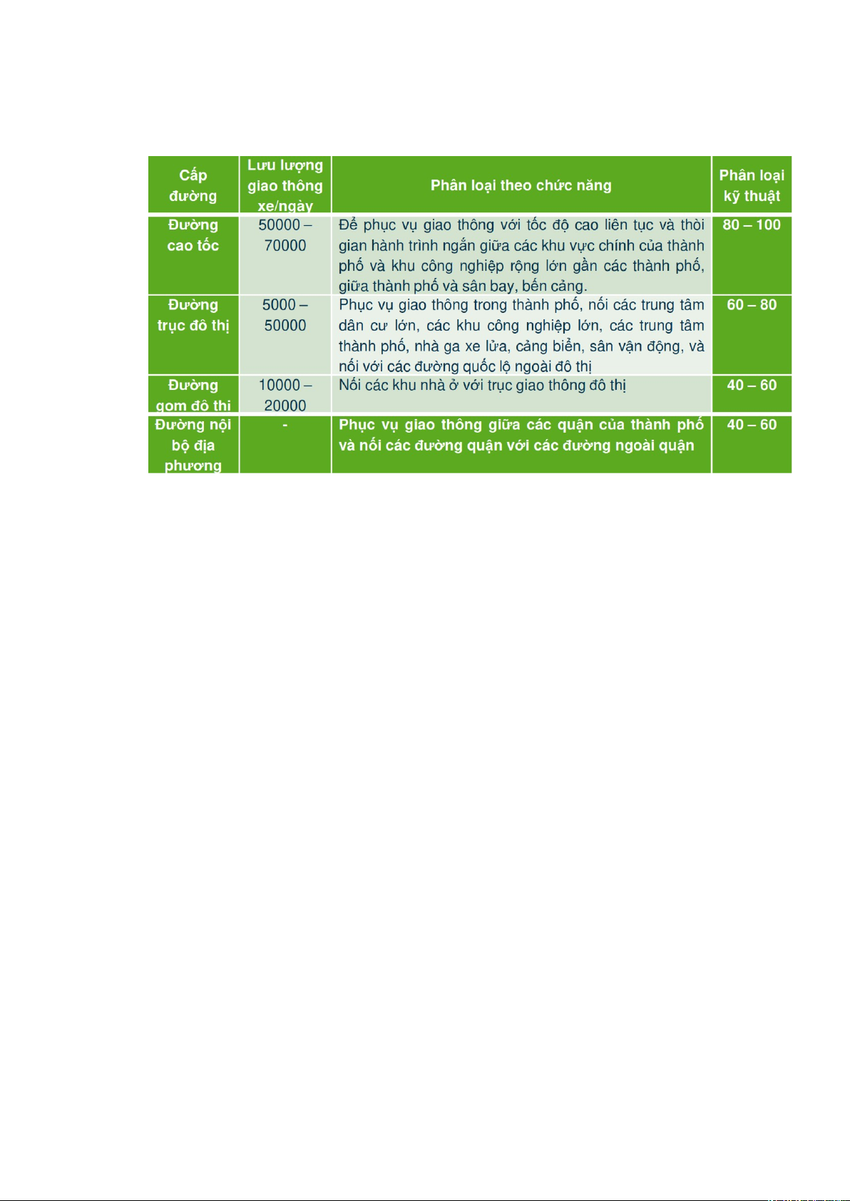 + Theo TCVN 4054-98: quy định phân cấp theo kỹ thuật cho mạng lưới đường