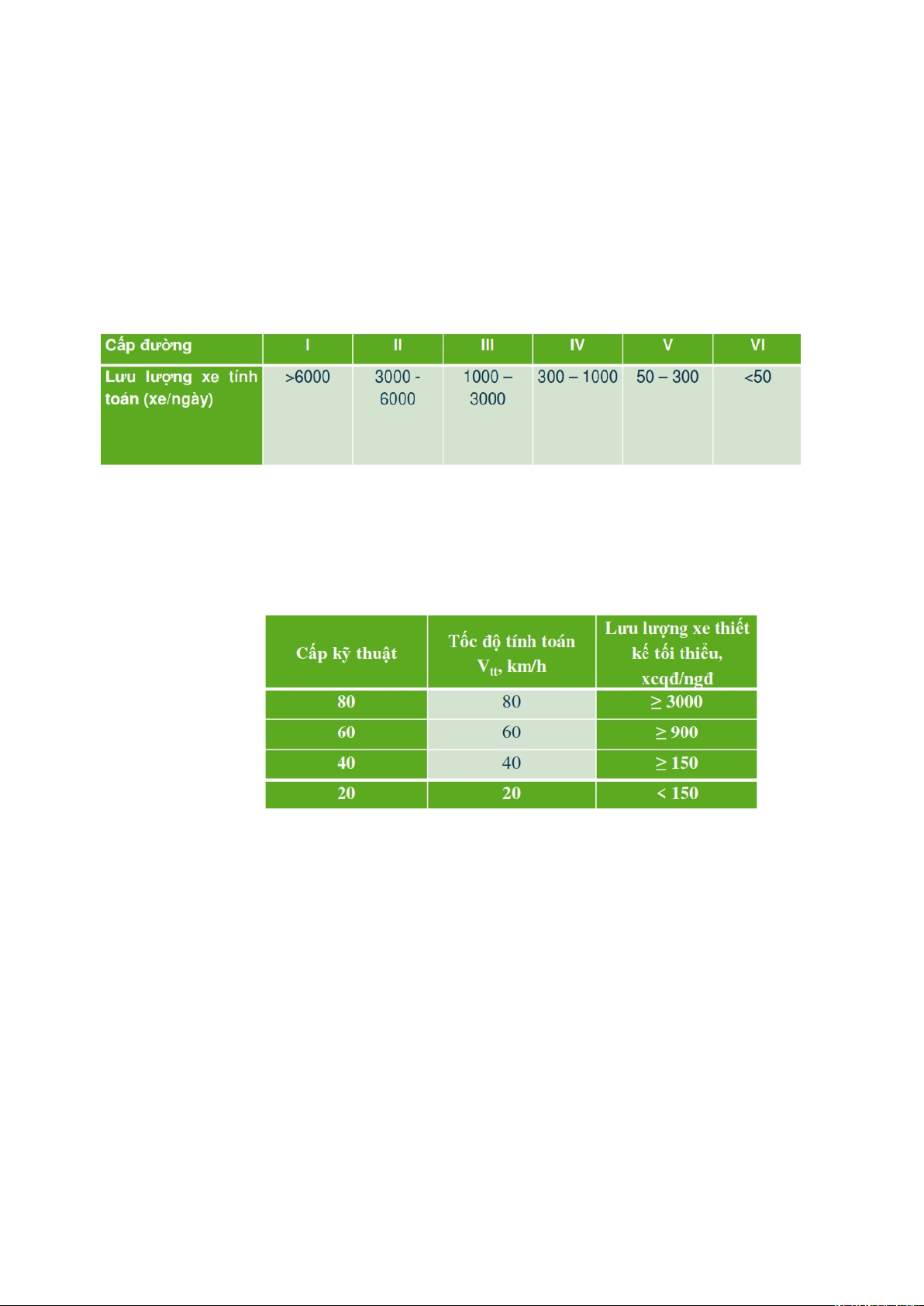 + Theo TCVN 4054-85: cấp kỹ thuật của đường ô tô được chia thành sáu cấp theo