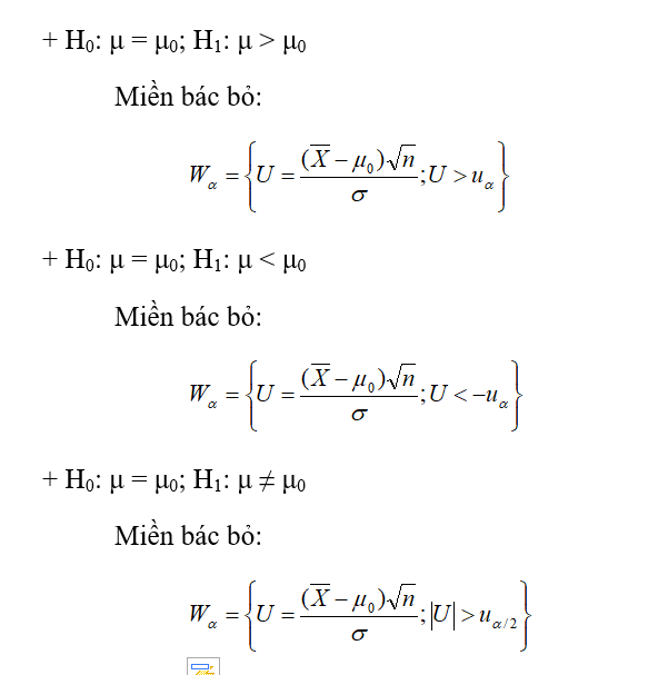 Với và kiểm định một phía phải, tra bảng giá trị tới hạn chuẩn:
