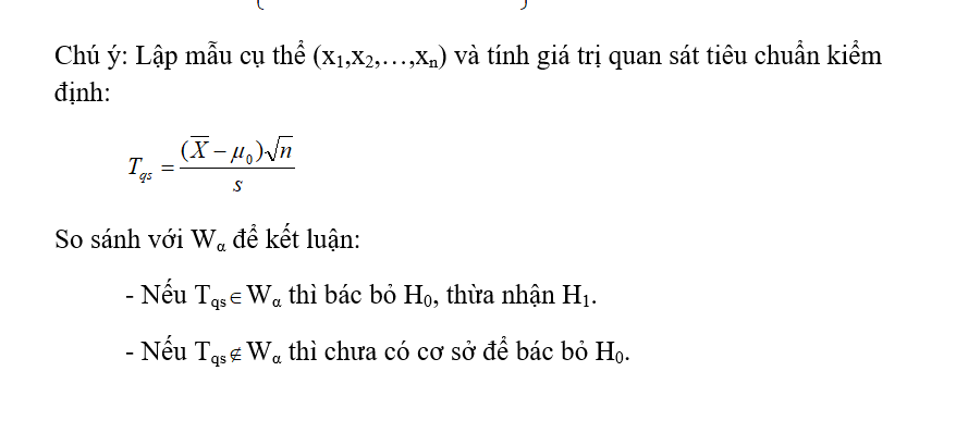 (Thống kê này xấp xỉ N(0,1) khi n đủ lớn, nhưng ở đây n nhỏ nên cần lưu ý).