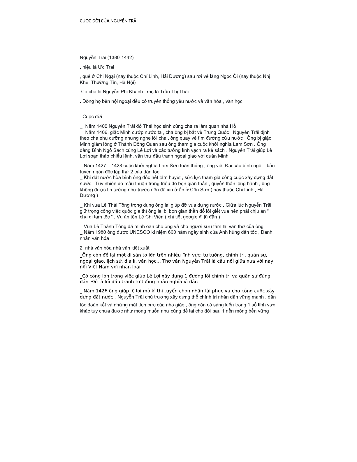 CU ỘC ĐỜI VÀ CÔNG LAO NGUYỄN TRÃI - NHÀ VĂN HÓA THẾ KỶ XIV-XV