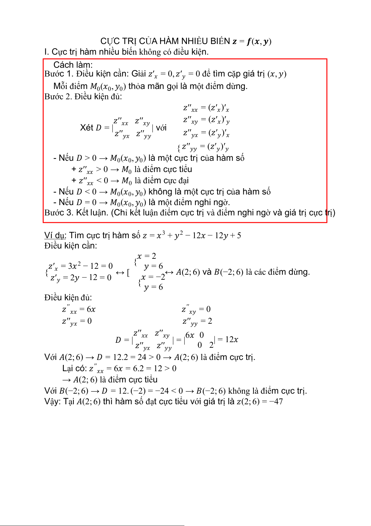 I. Cực trị hàm nhiều biến không có điều kiện. Cách làm: