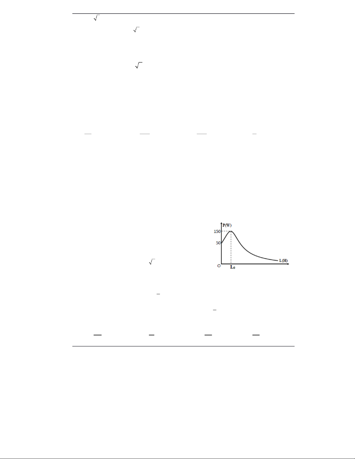 2 . Điện áp hiệu dụng hai đầu đoạn mạch là 150 V. Gọi P 1và P 2là công suất của mạch ứng với R1 và R . 2 Tính P và P 1 .2 A. P = 40 1 W; P = 40 2 W. B. P = 50 1 W; P = 40 2 W. C. P = 40 1 W; P = 50 2 W. D. P = 30 1 W; P = 30 2 W.