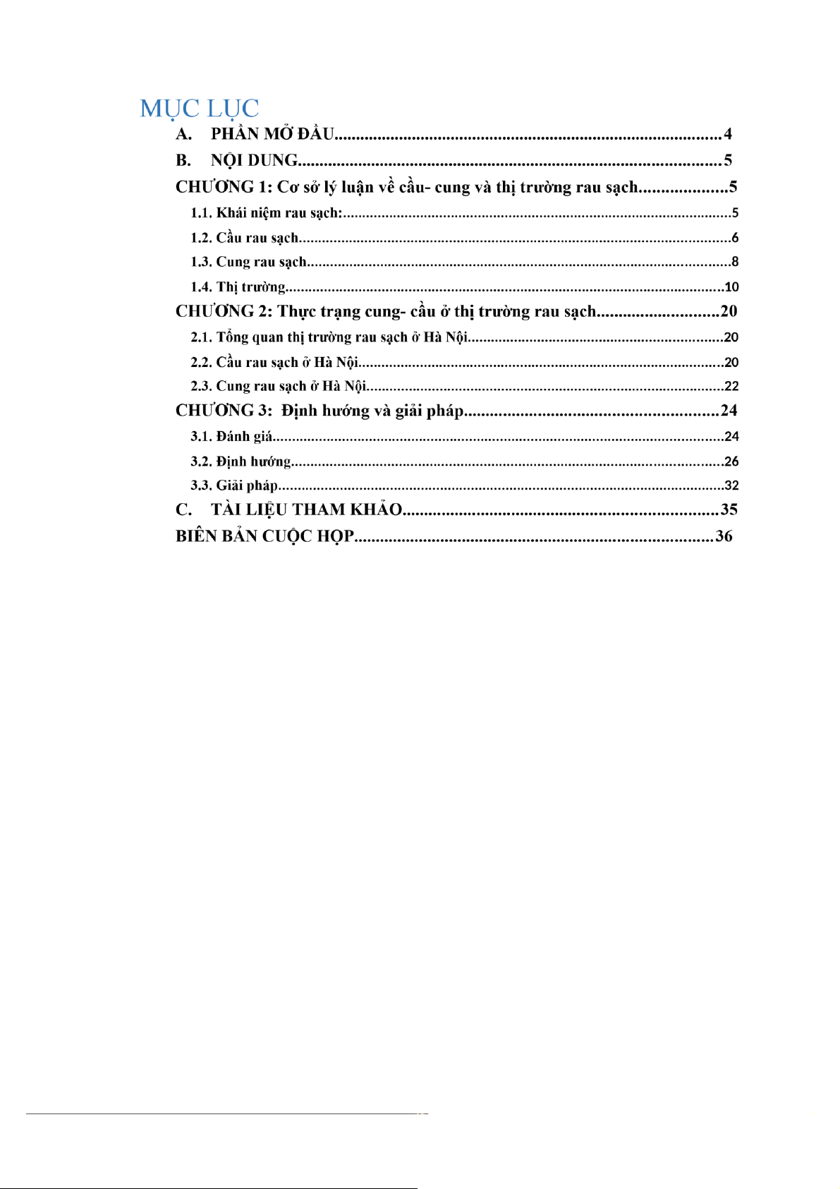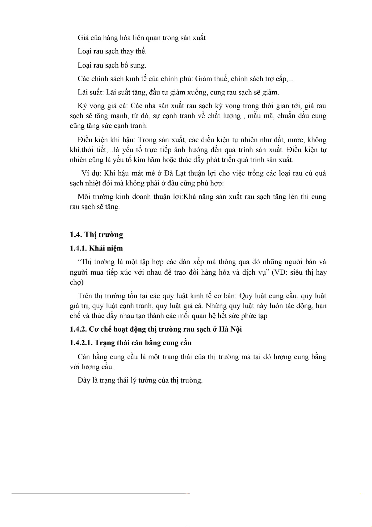 CHƯƠNG 1: Cơ sở lý luận về cầu- cung và thị trường rau sạch