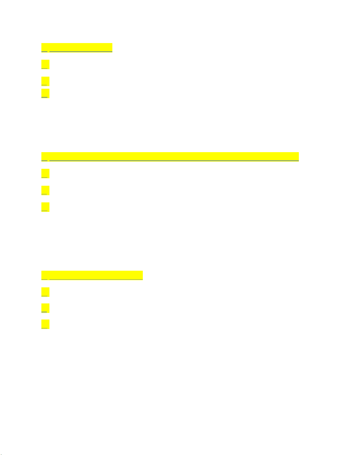 Câu 2: Đọc (Reading) là một ví dụ của bước truyền thông nào bên dưới? a. Phản hồi thông điệp b. Mã hóa thông điệp c. Giải mã thông điệp d. Gửi thông điệp lOMoARcPSD| 61860737