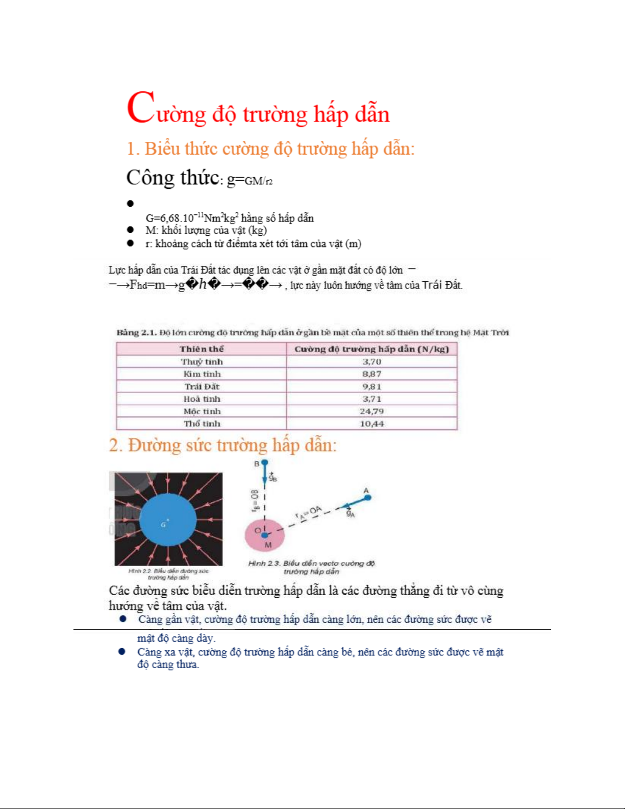 Cường độ Trường Hấp Dẫn: Công Thức và Đường Sức Trường. Tài liệu tổng hợp được sưu tầm. Mời các bạn tham khảo