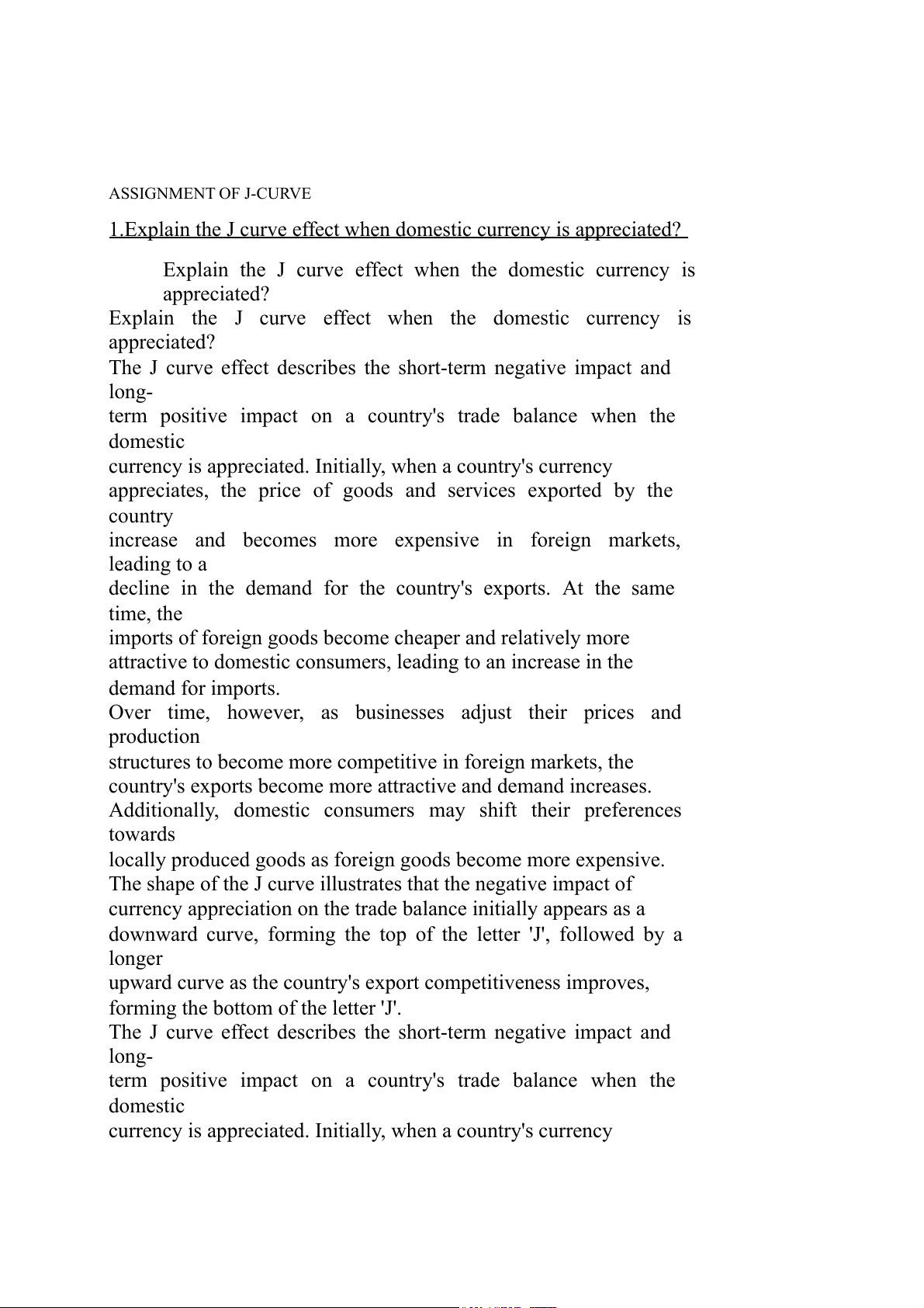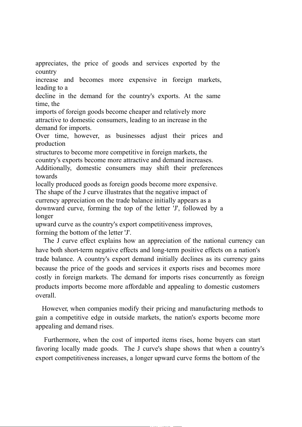 letter "J," illustrating the negative impact of currency appreciation on trade