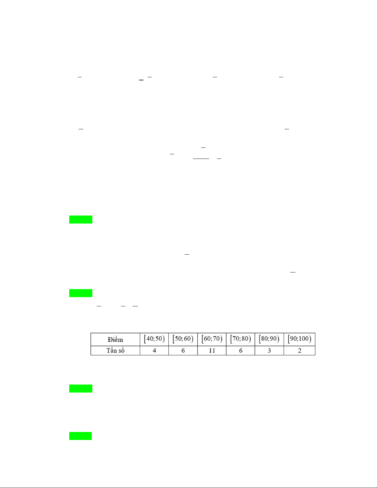 Câu 3: Kết quả kì thi trắc nghiệm môn Toán với thang điểm 100 của 32 học sinh được cho trong bảng sau