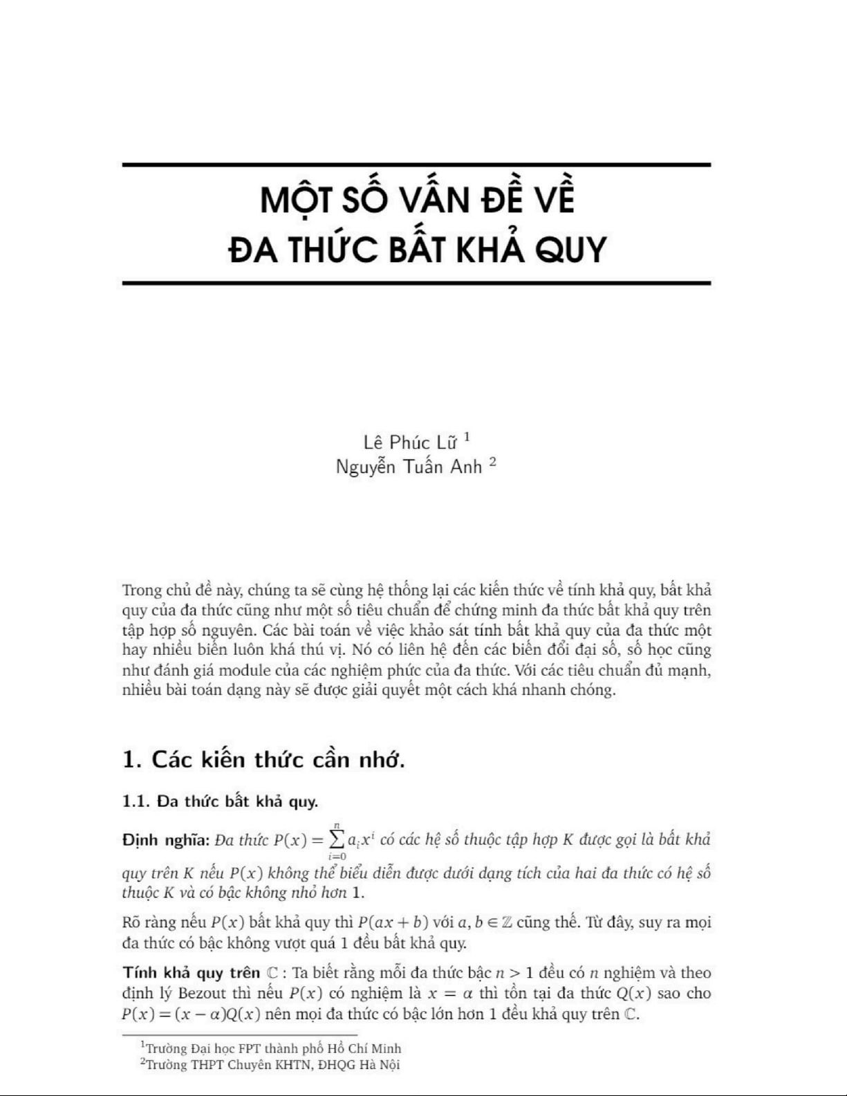 ĐÀ THỨC BẤT KHẢ QUY - TIÊU CHUẨN & BÀI TẬP (MATH 201)