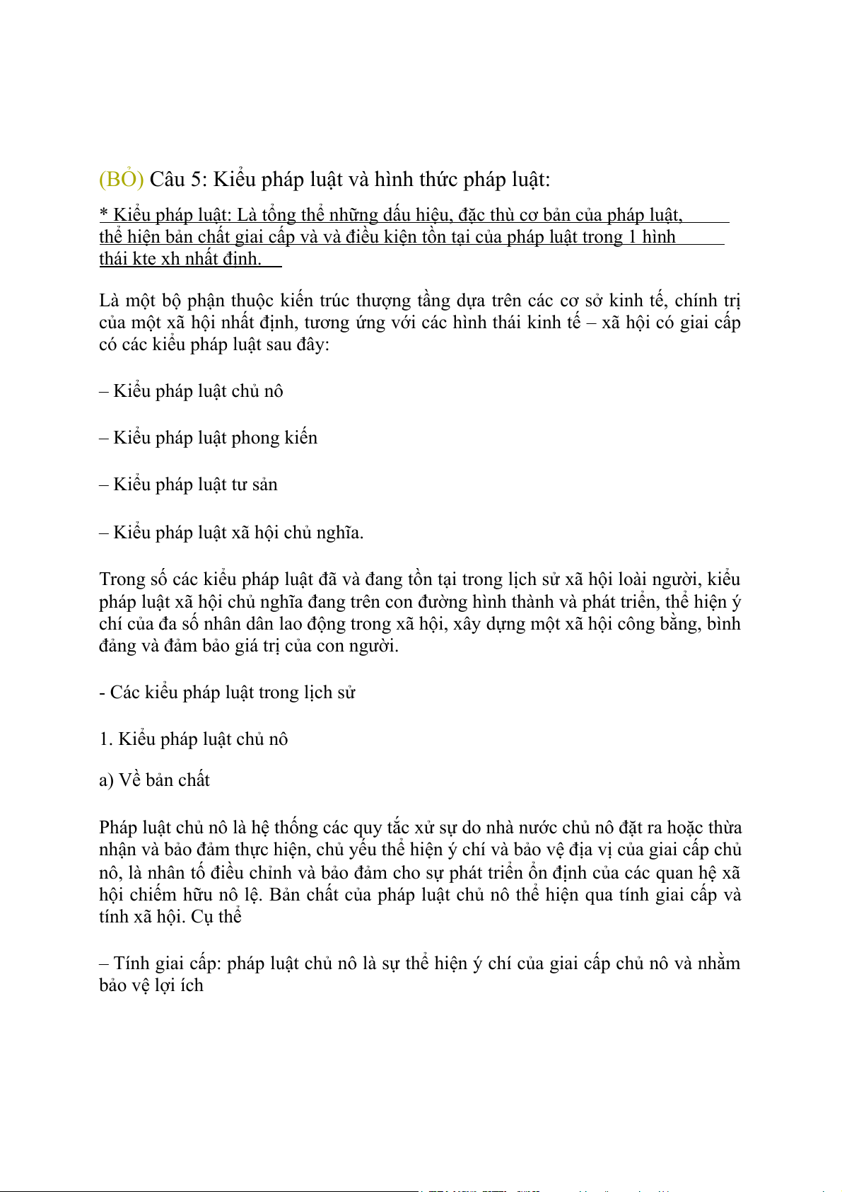 (BỎ) Câu 5: Kiểu pháp luật và hình thức pháp luật: * Kiểu pháp luật:
