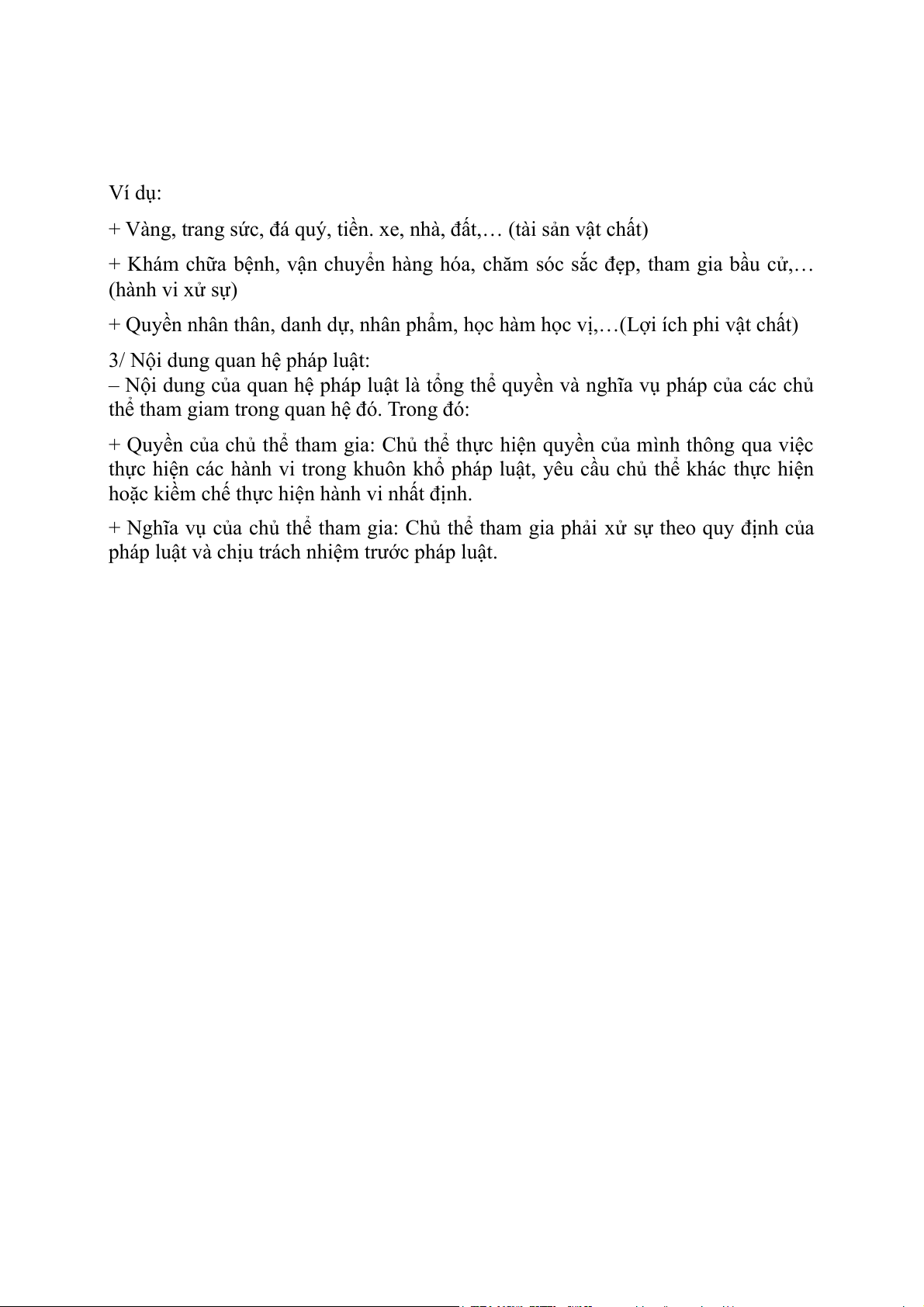– Nội dung của quan hệ pháp luật là tổng thể quyền và nghĩa vụ pháp của các chủ
