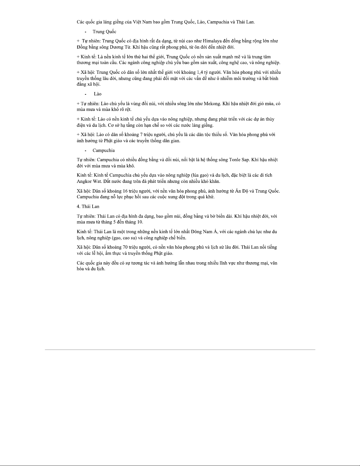 Đặc điểm các quốc gia láng giềng Việt Nam: Trung Quốc, Lào, Campuchia, Thái Lan