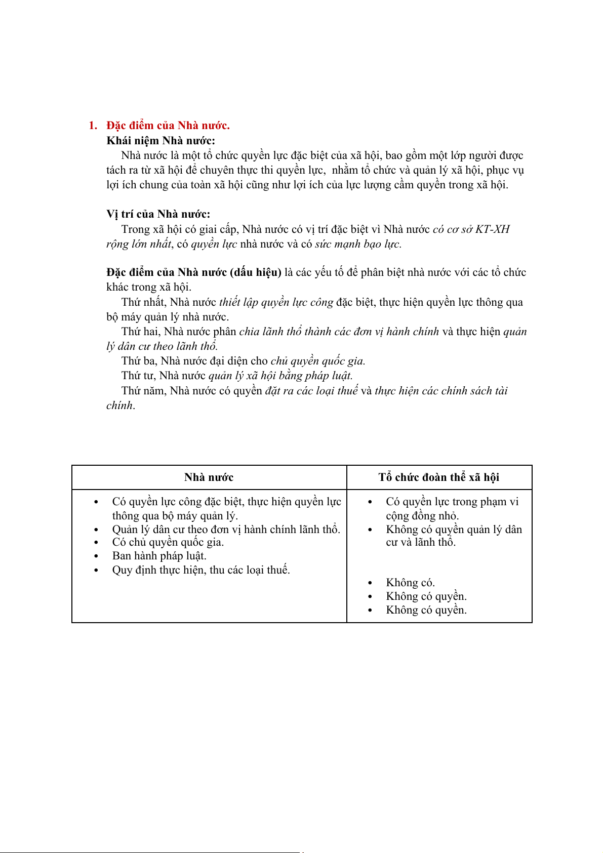 1. Đặc điểm của Nhà nước. Khái niệm Nhà nước: