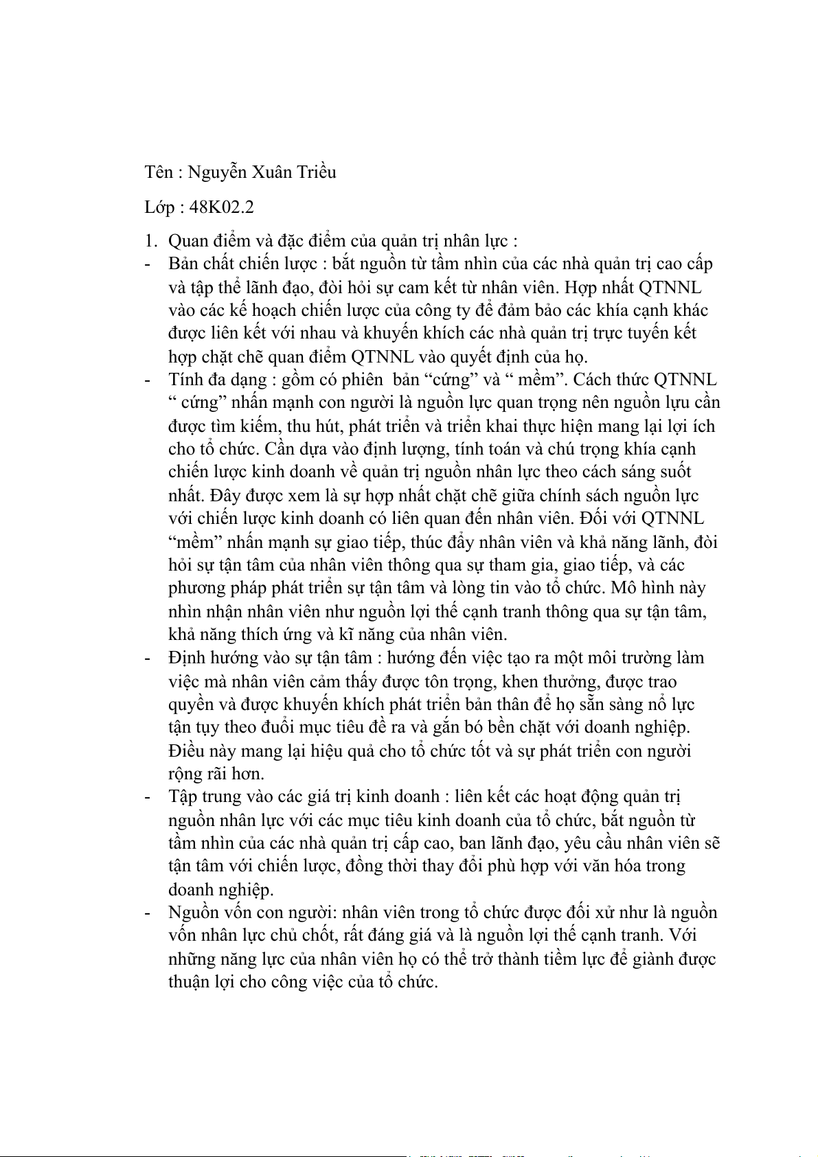 1. Quan điểm và đặc điểm của quản trị nhân lực :