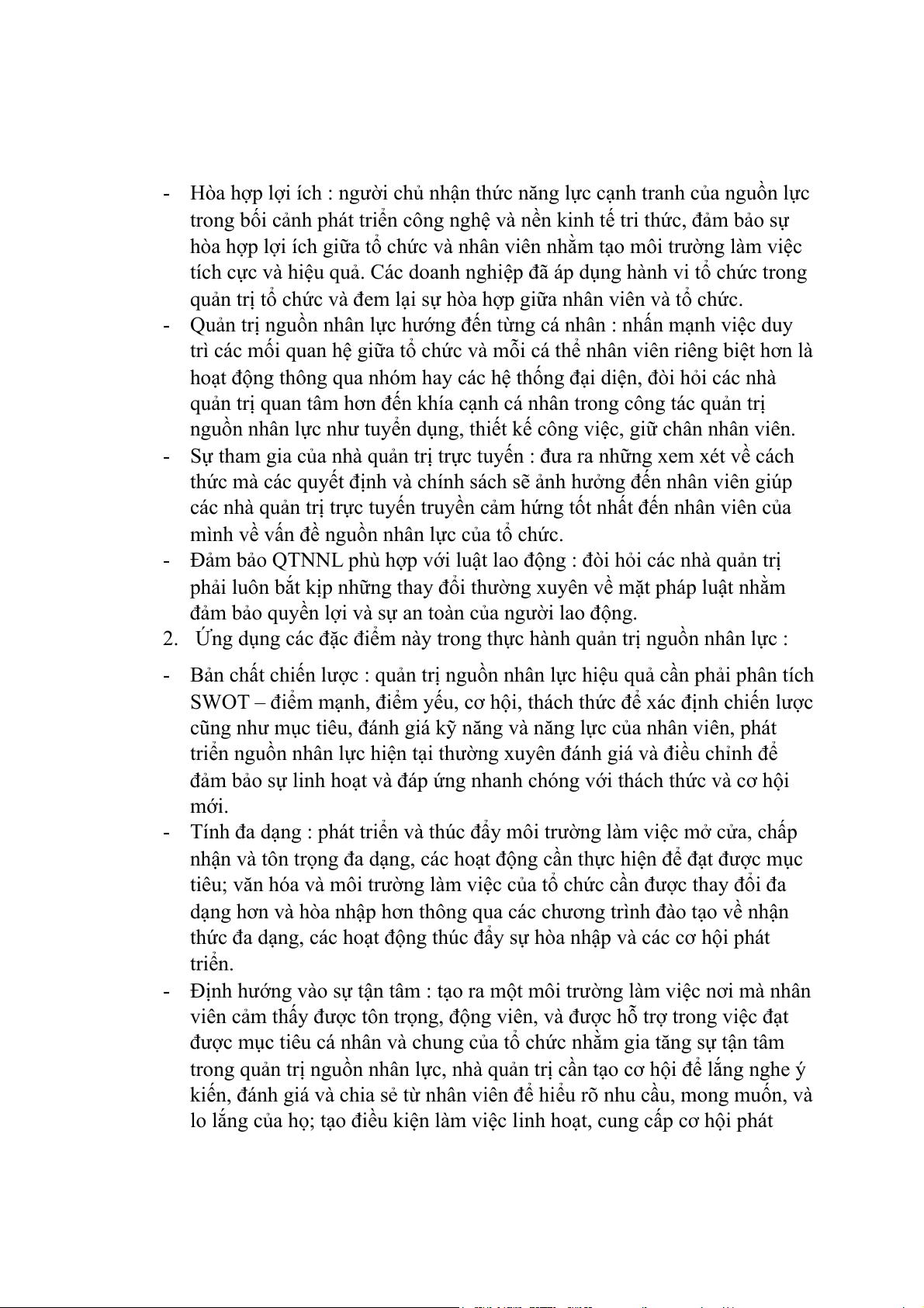 2. Ứng dụng các đặc điểm này trong thực hành quản trị nguồn nhân lực :