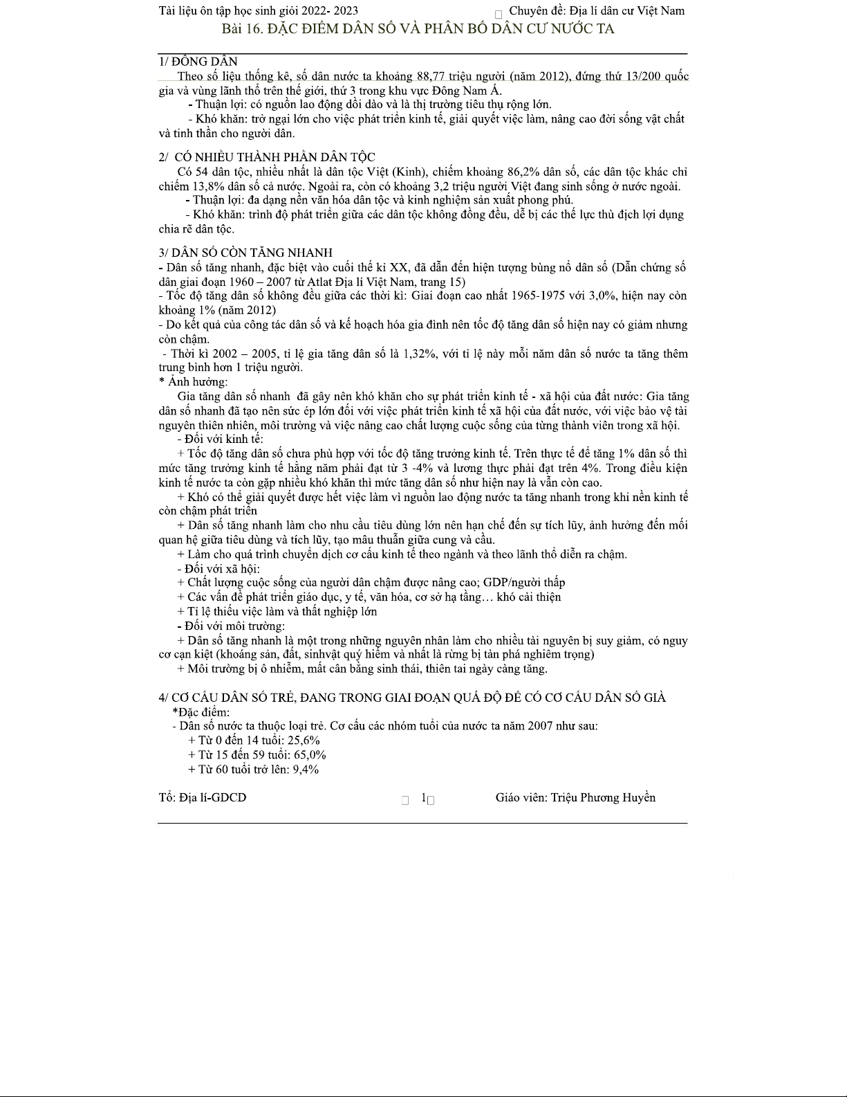 Đặc Điểm Dân Cư Việt Nam - Bài 16 (GDCD 12)