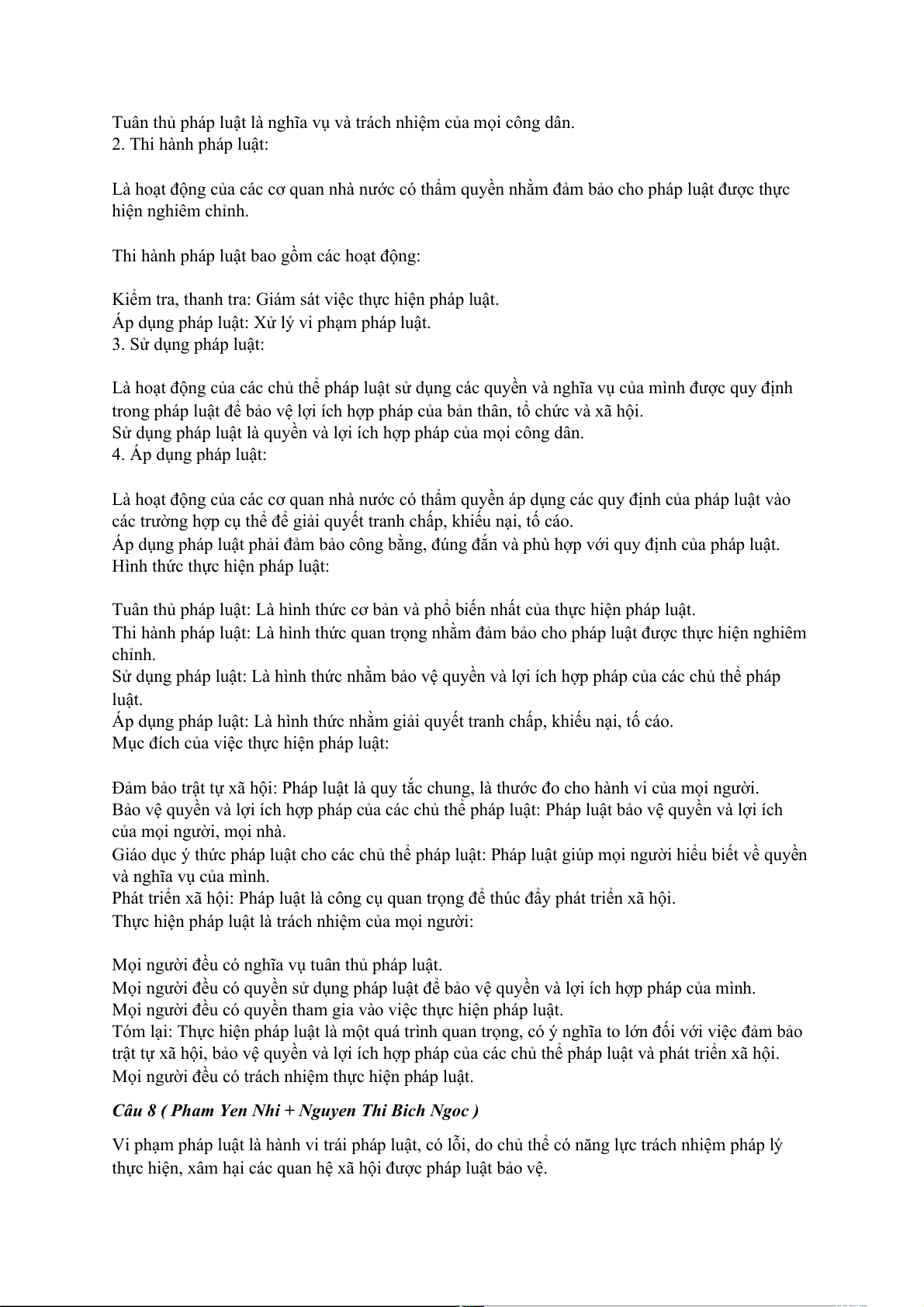 Tóm lại: Thực hiện pháp luật là một quá trình quan trọng, có ý nghĩa to lớn đối với việc đảm bảo