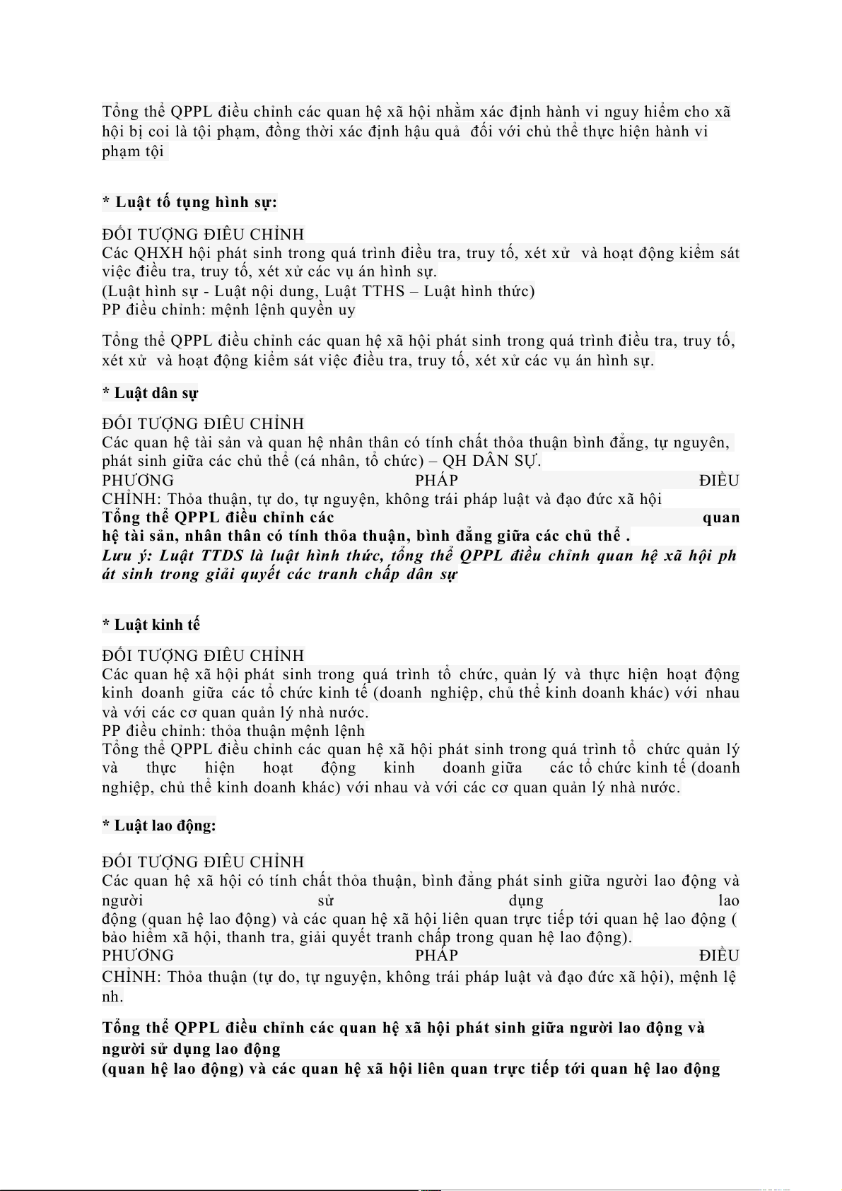 Lưu ý: Luật TTDS là luật hình thức, tổng thể QPPL điều chỉnh quan hệ xã hội ph