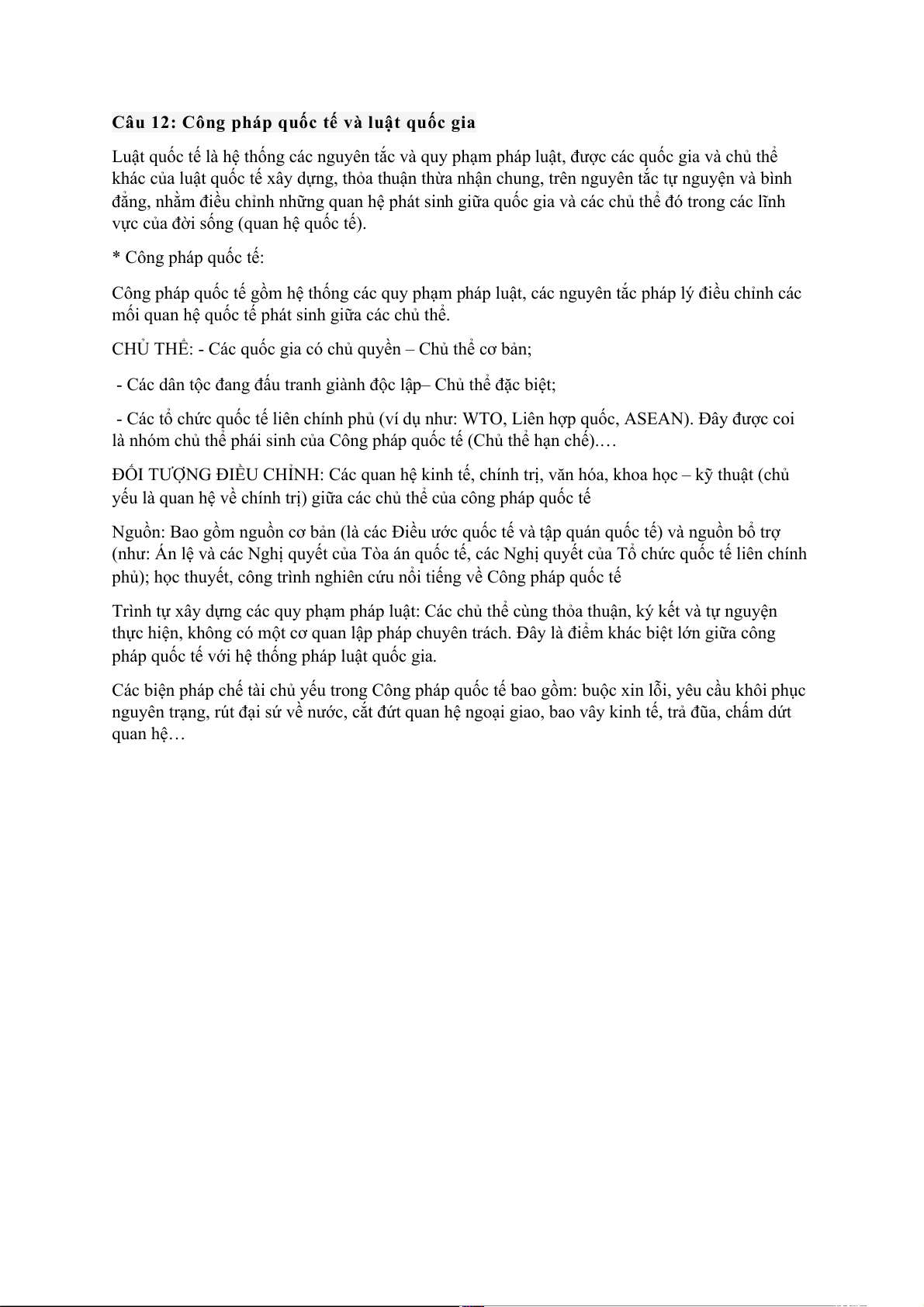 Câu 12: Công pháp quốc tế và luật quốc gia