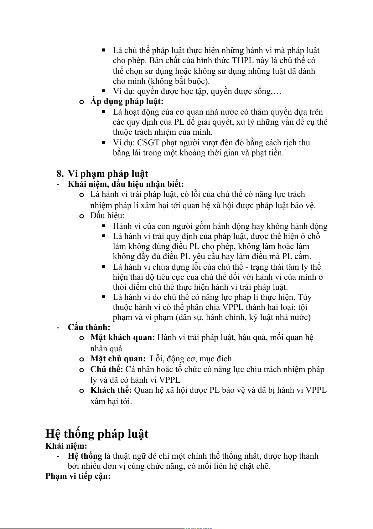 phạm và vi phạm (dân sự, hành chính, kỷ luật nhà nước) - Cấu thành: o