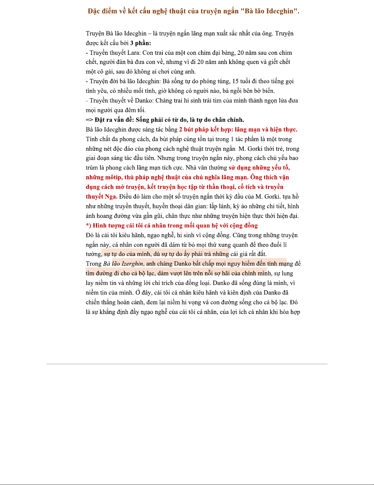 Đặc điểm và kết cấu nghệ thuật trong truyện ngắn "Bà lão Idecghin"