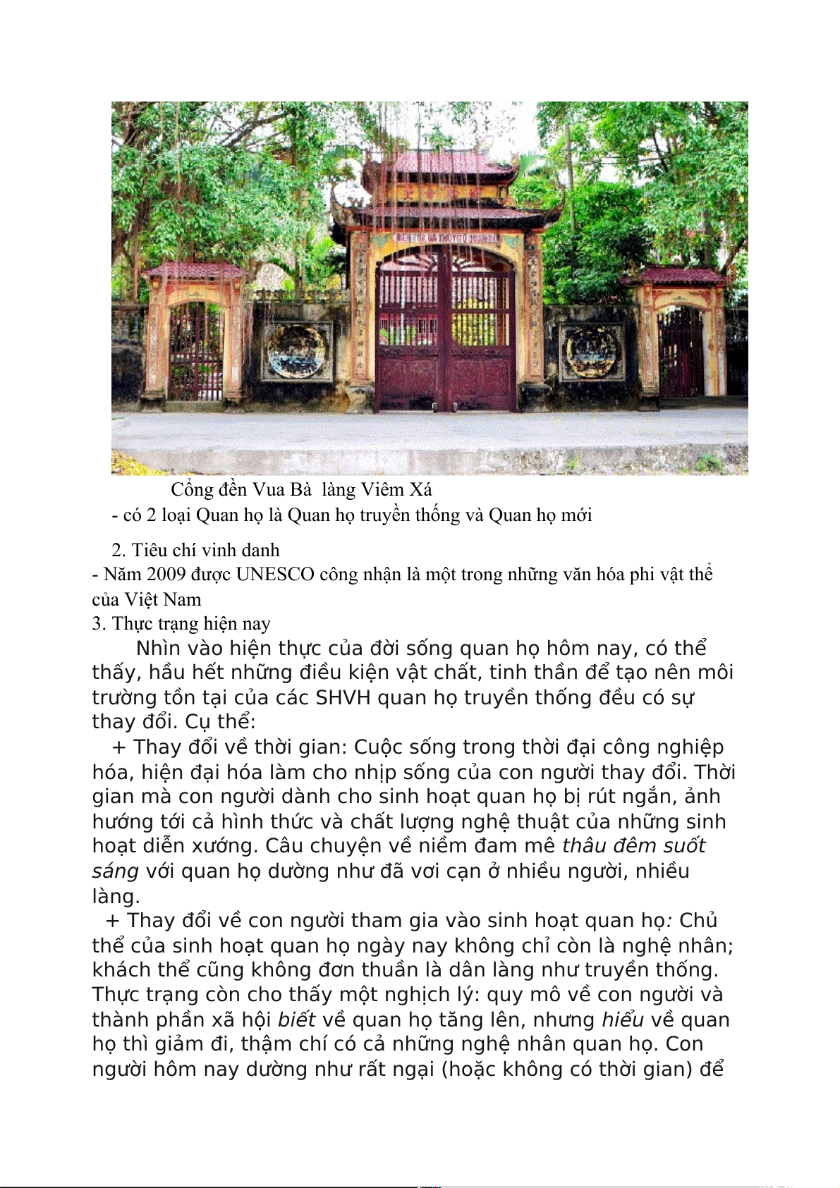 - Nói đến Quan họ là nói đến nền văn hóa tổng thể từ nhiều yếu tố văn hóa hóa