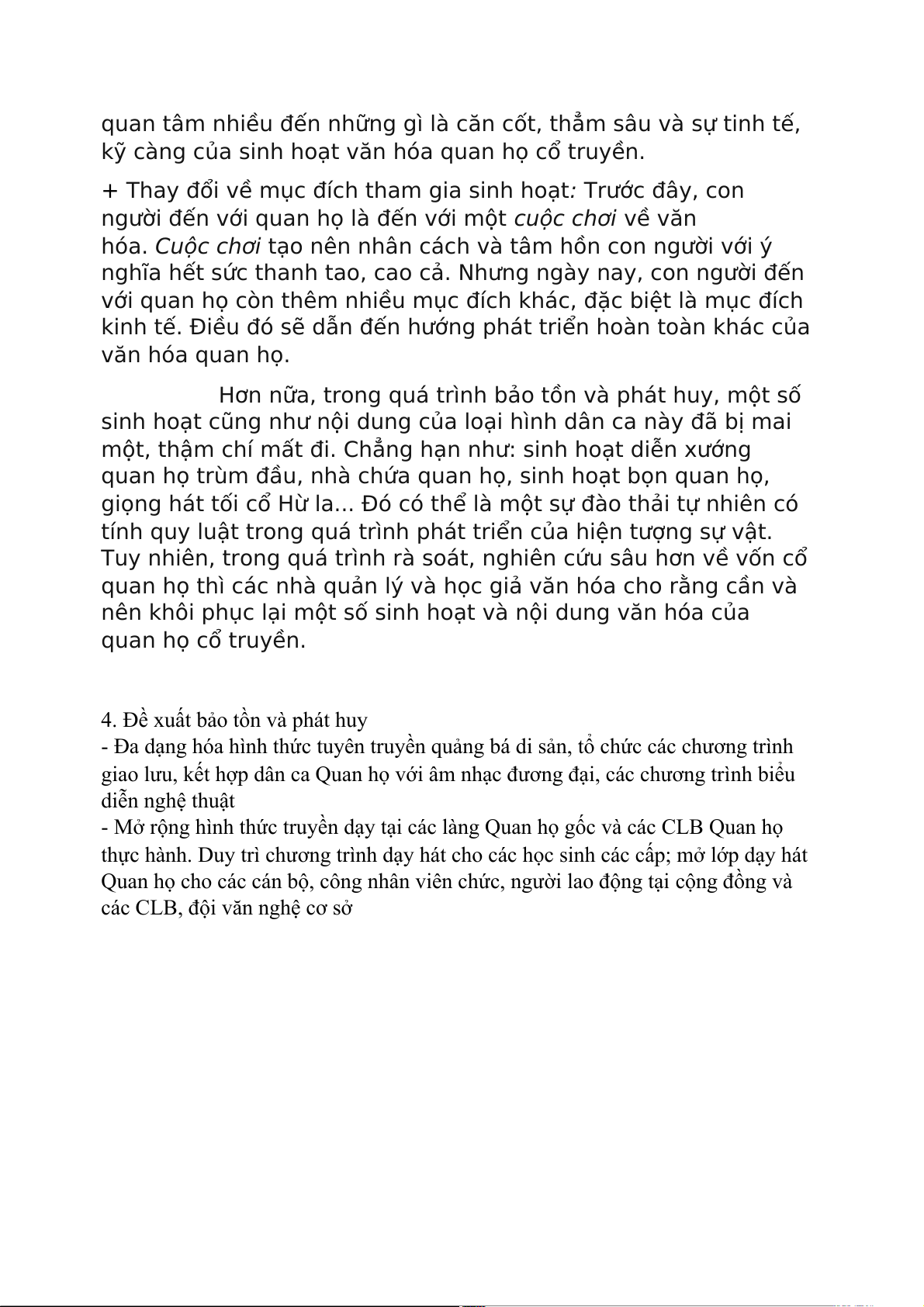 - Mở rộng hình thức truyền dạy tại các làng Quan họ gốc và các CLB Quan họ