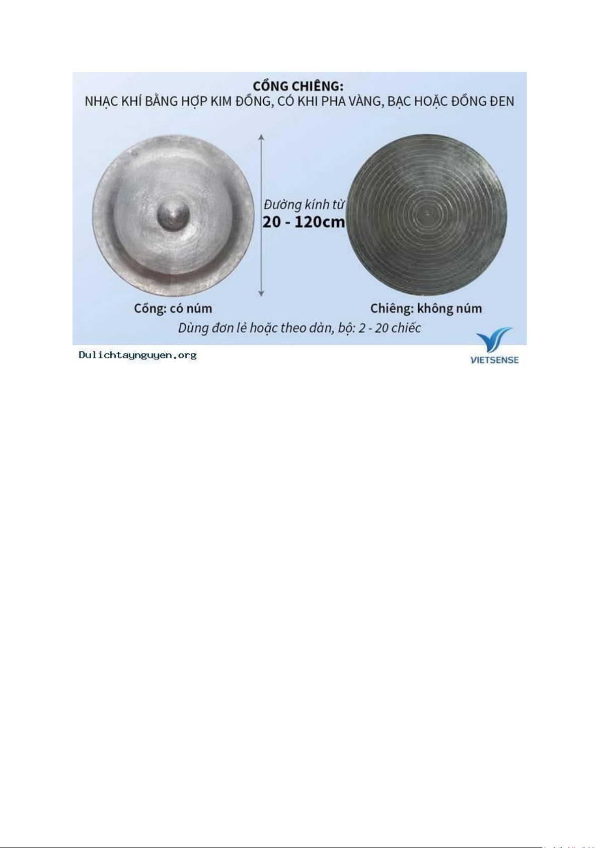 có cồng (loại có núm) và chiêng (loại không có