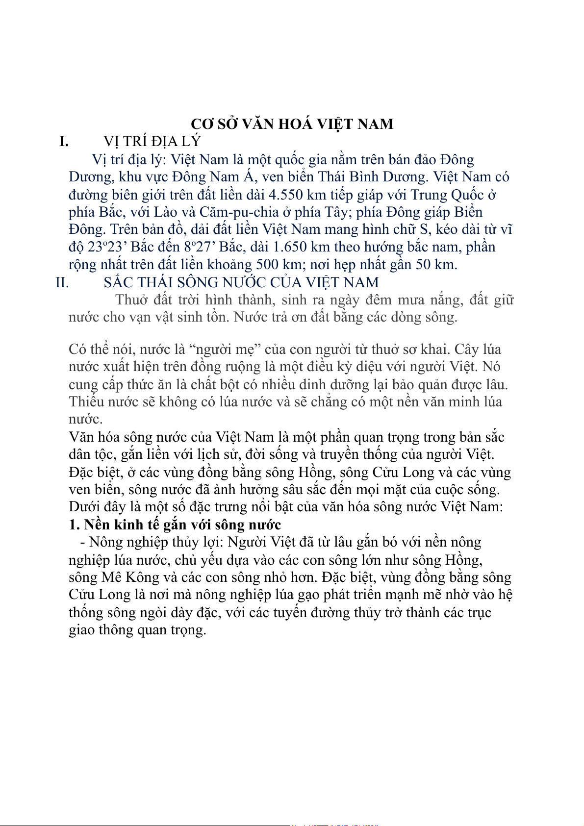 CƠ SỞ VĂN HOÁ VIỆT NAM I. VỊ TRÍ ĐỊA LÝ