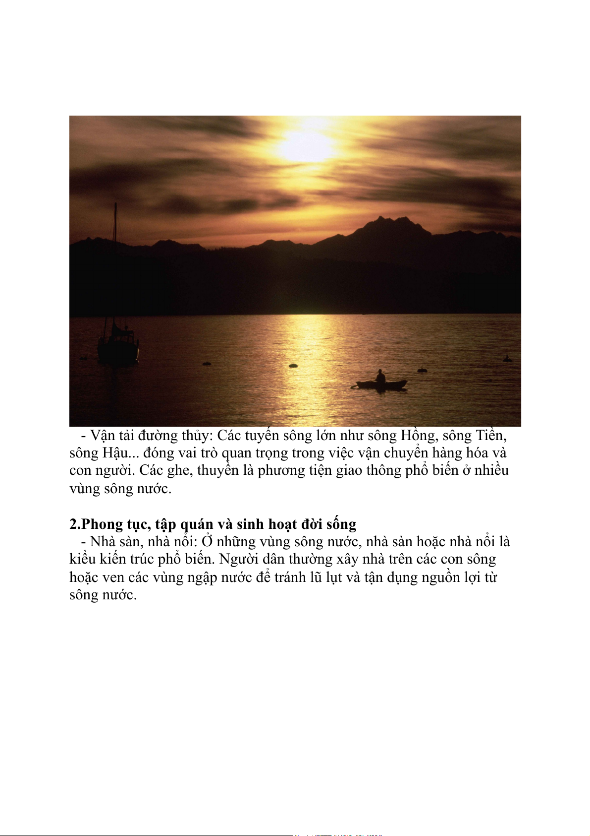 hoặc ven các vùng ngập nước để tránh lũ lụt và tận dụng nguồn lợi từ sông nước.