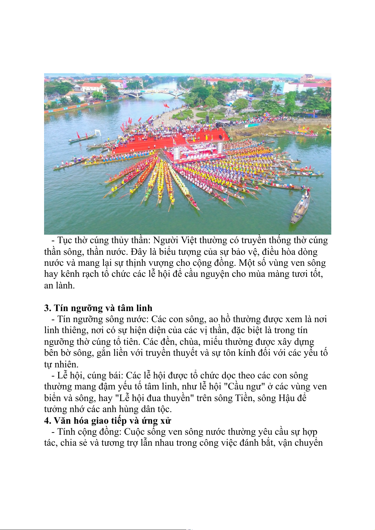 - Lễ hội sông nước: Các lễ hội truyền thống gắn với sông nước rất phổ