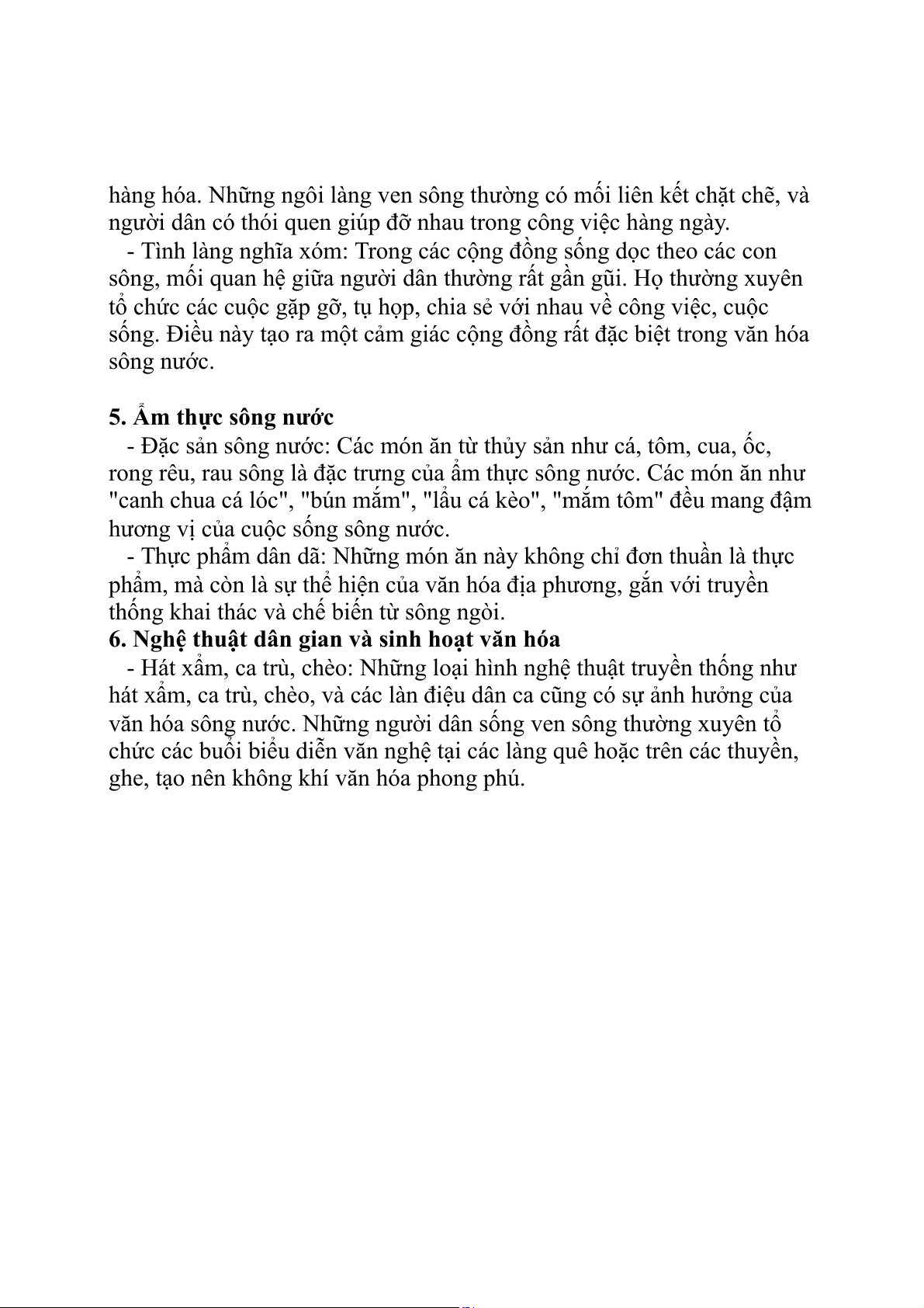 Dưới đây là một số đặc trưng nổi bật của văn hóa sông nước Việt Nam: