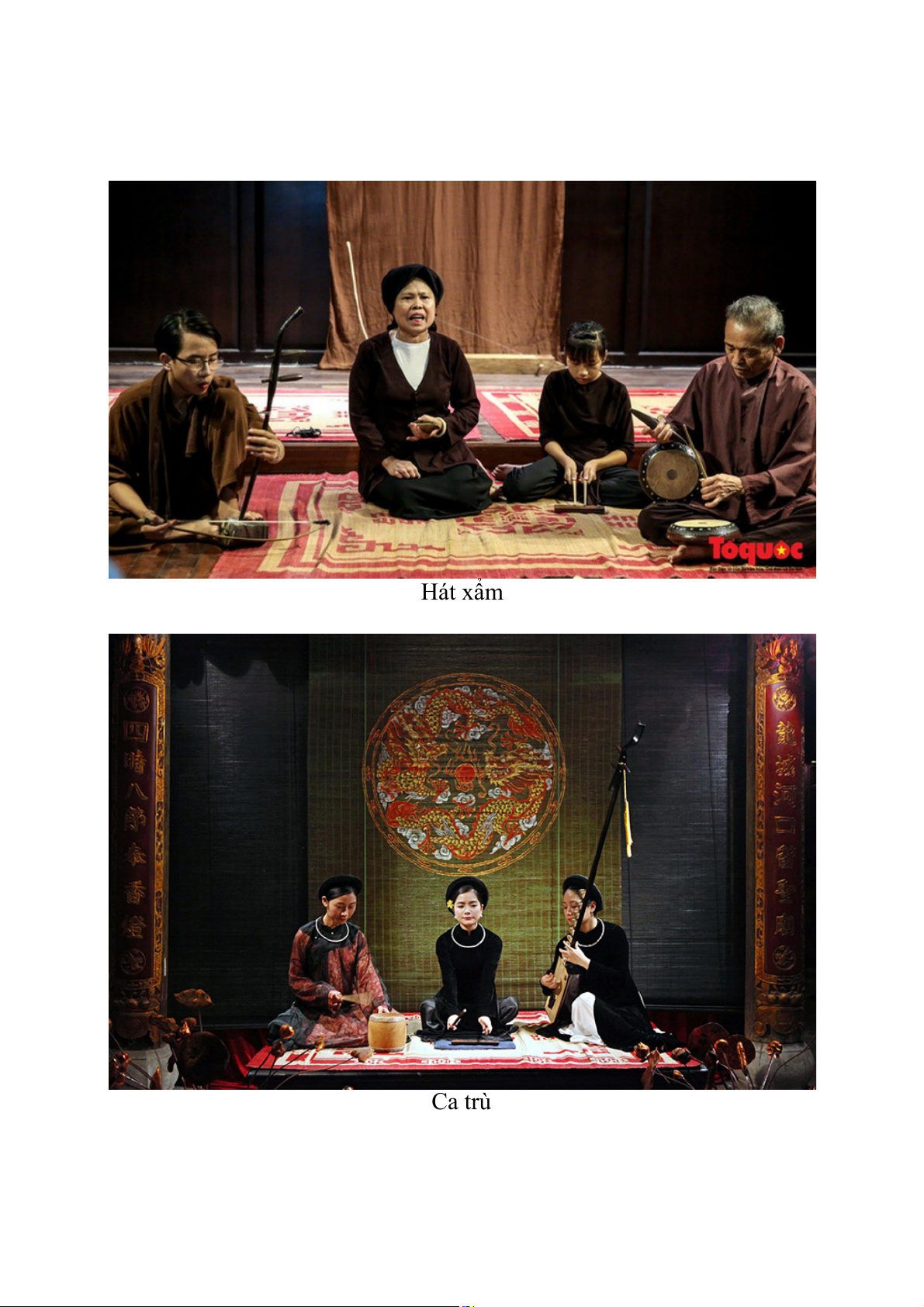 - Hát xẩm, ca trù, chèo: Những loại hình nghệ thuật truyền thống như