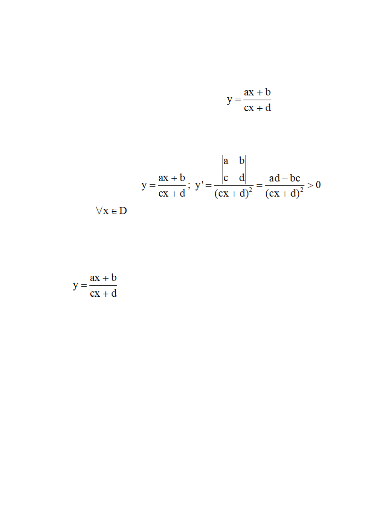 ⇔ y' > 0, ∀x ∈ D ⇔ ad - cb > 0 (Không có dấu “=”)