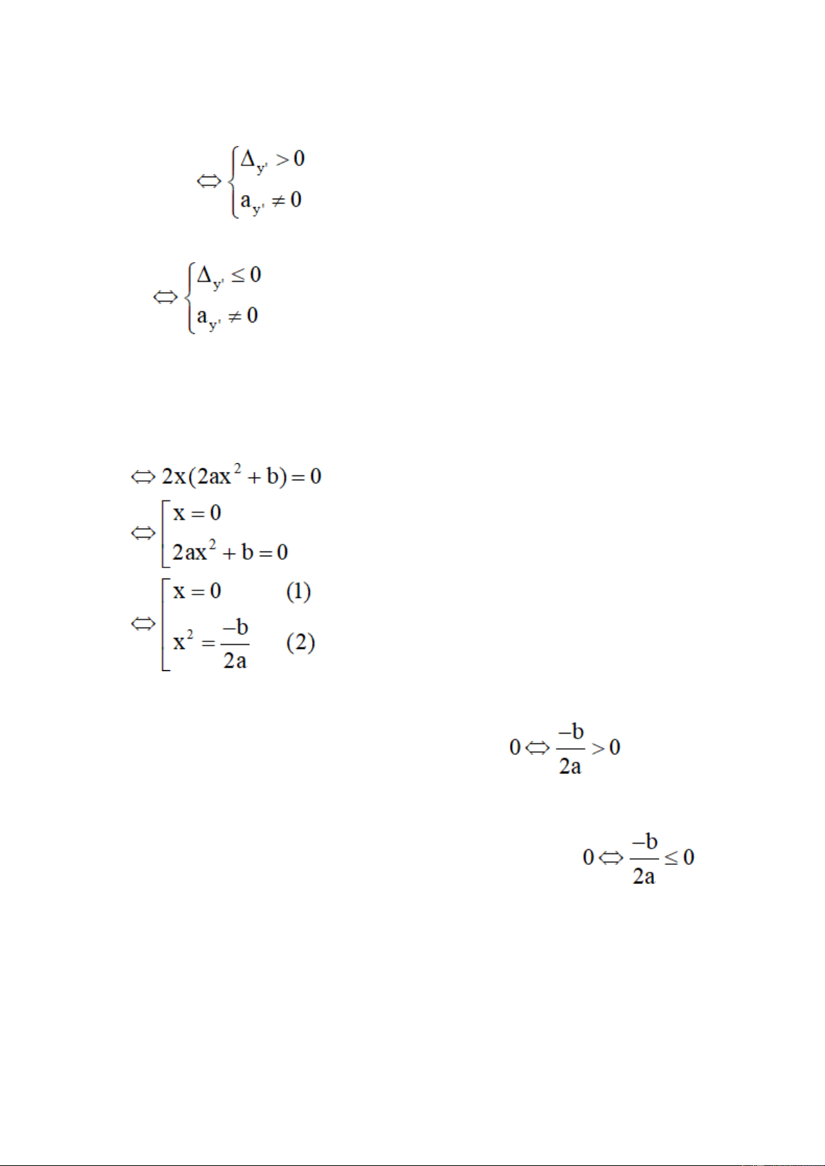 - Hàm số có 2 cực trị (cực đại và cực tiểu) ⇔ phương trình y = 0 có 2 nghiệm phân biệt