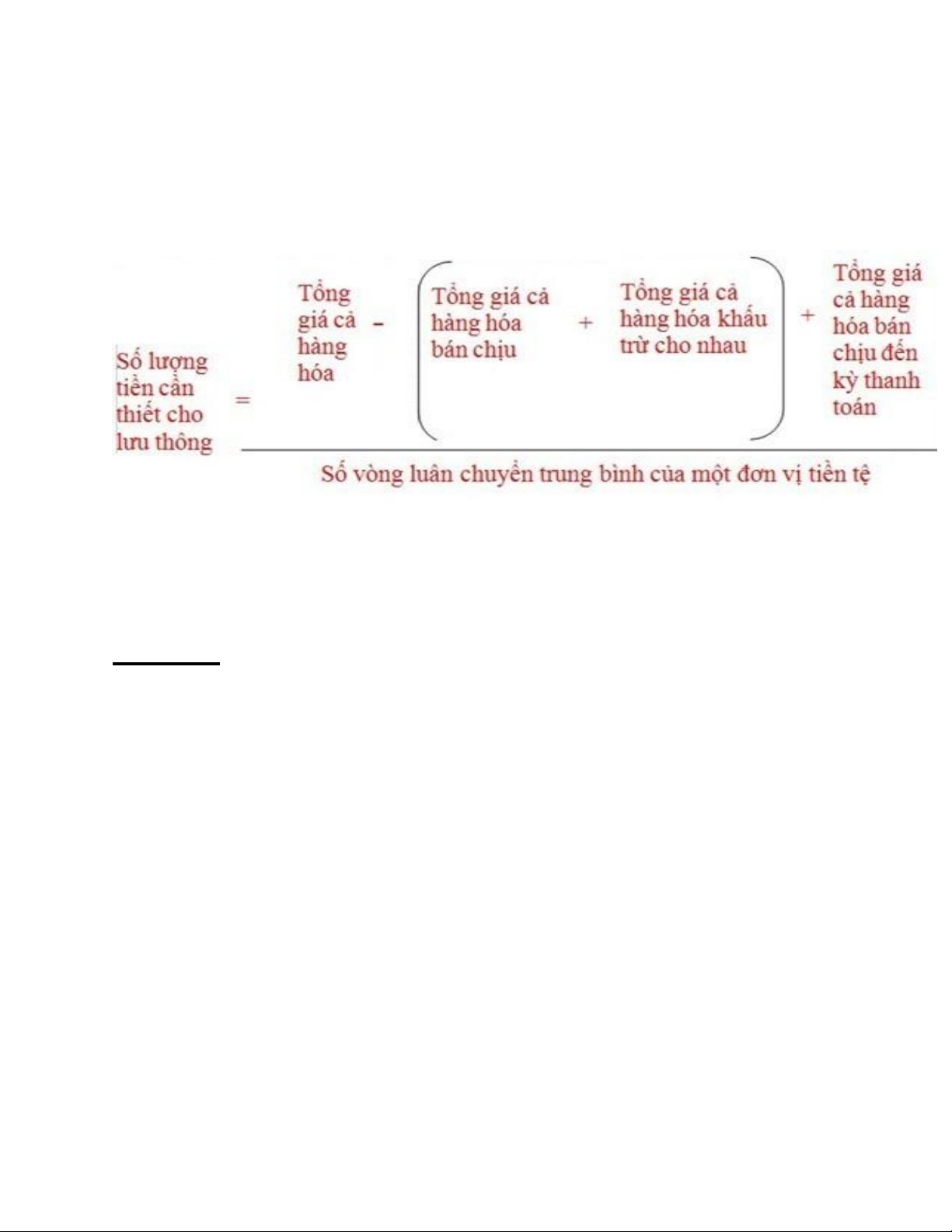 toán thì số lượng tiền cần thiết cho lưu thông được xác định như sau: