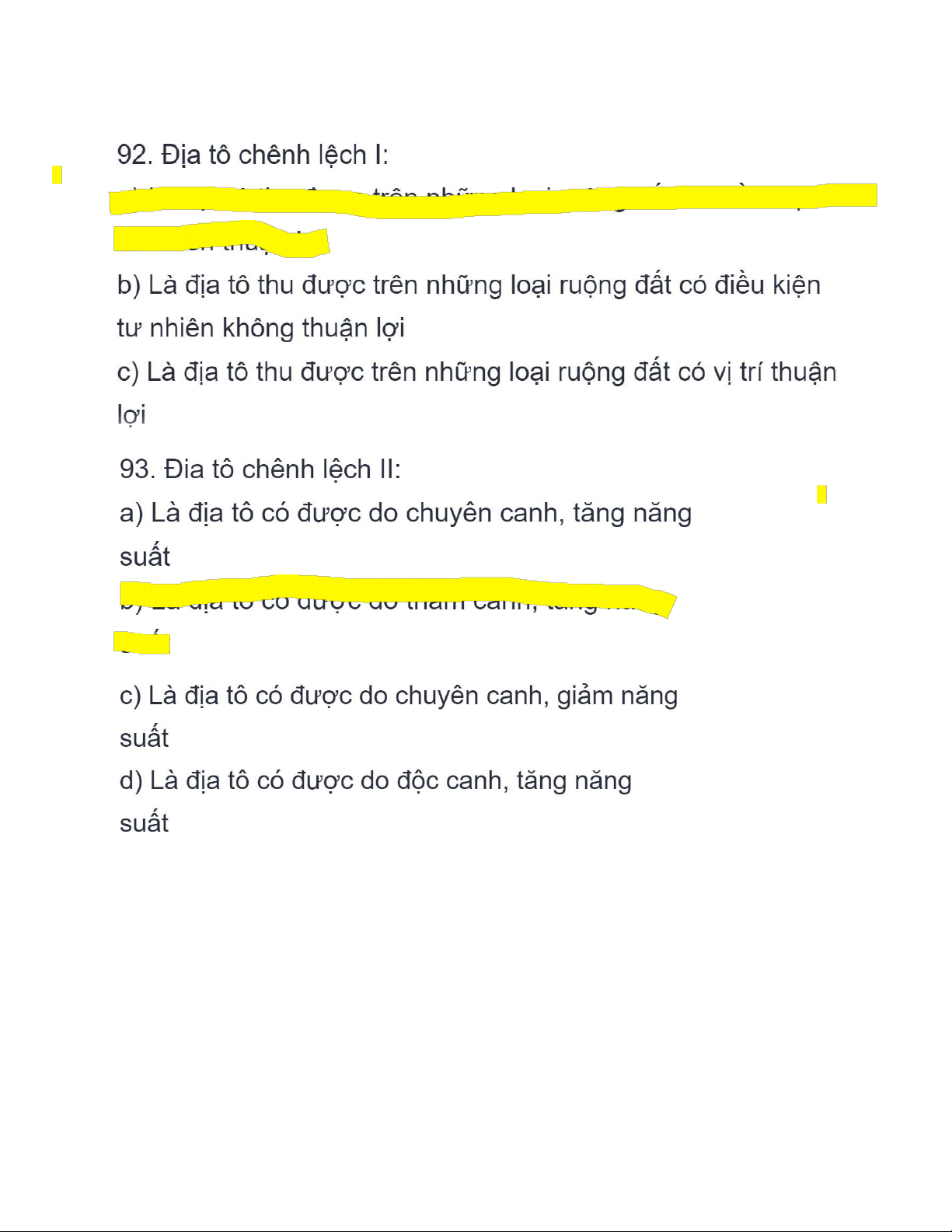 - Câu 86: Địa tô tuyệt đối là địa tô mà