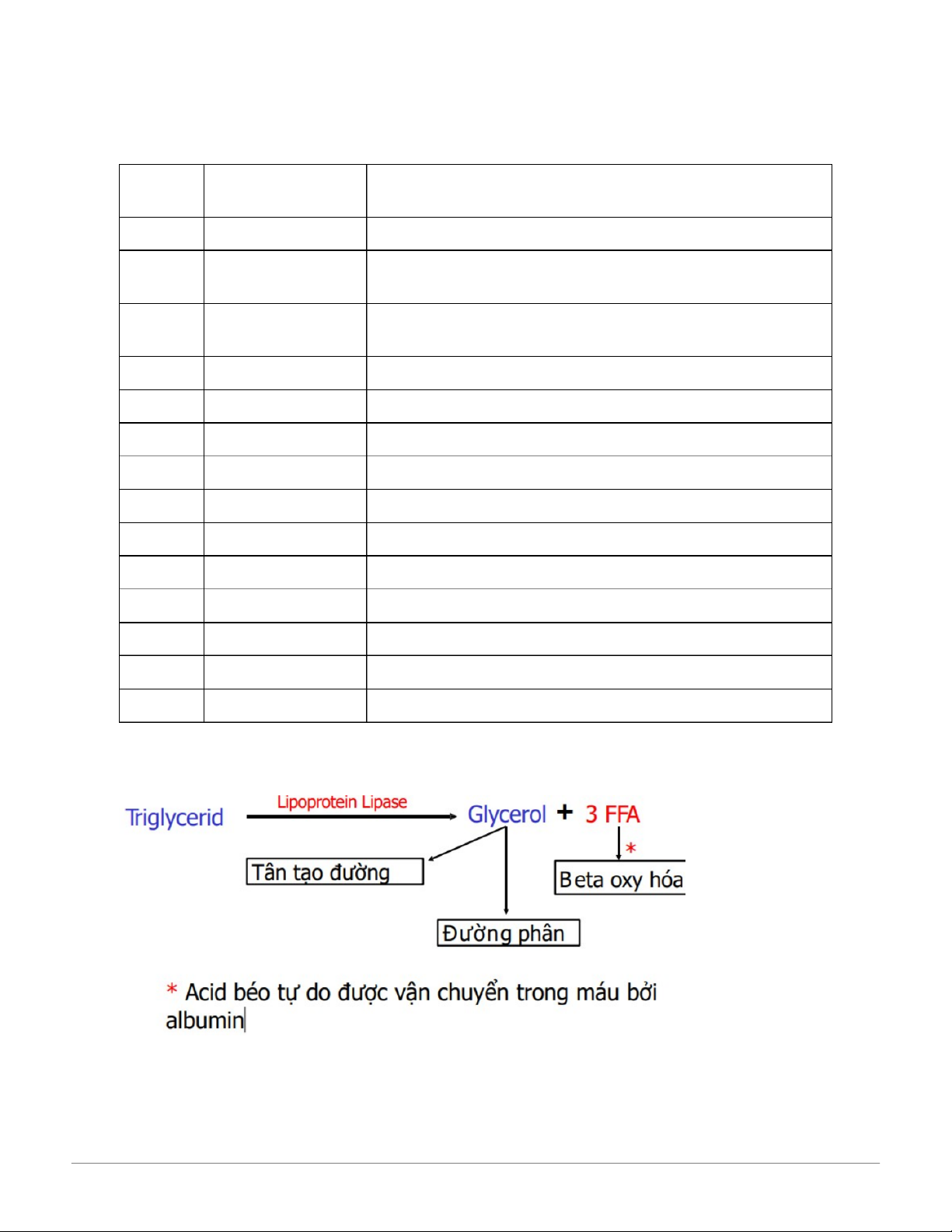 Acid béo tự do (FFA): Dạng giải phóng từ mô mỡ và gắn với albumin để vận chuyển.