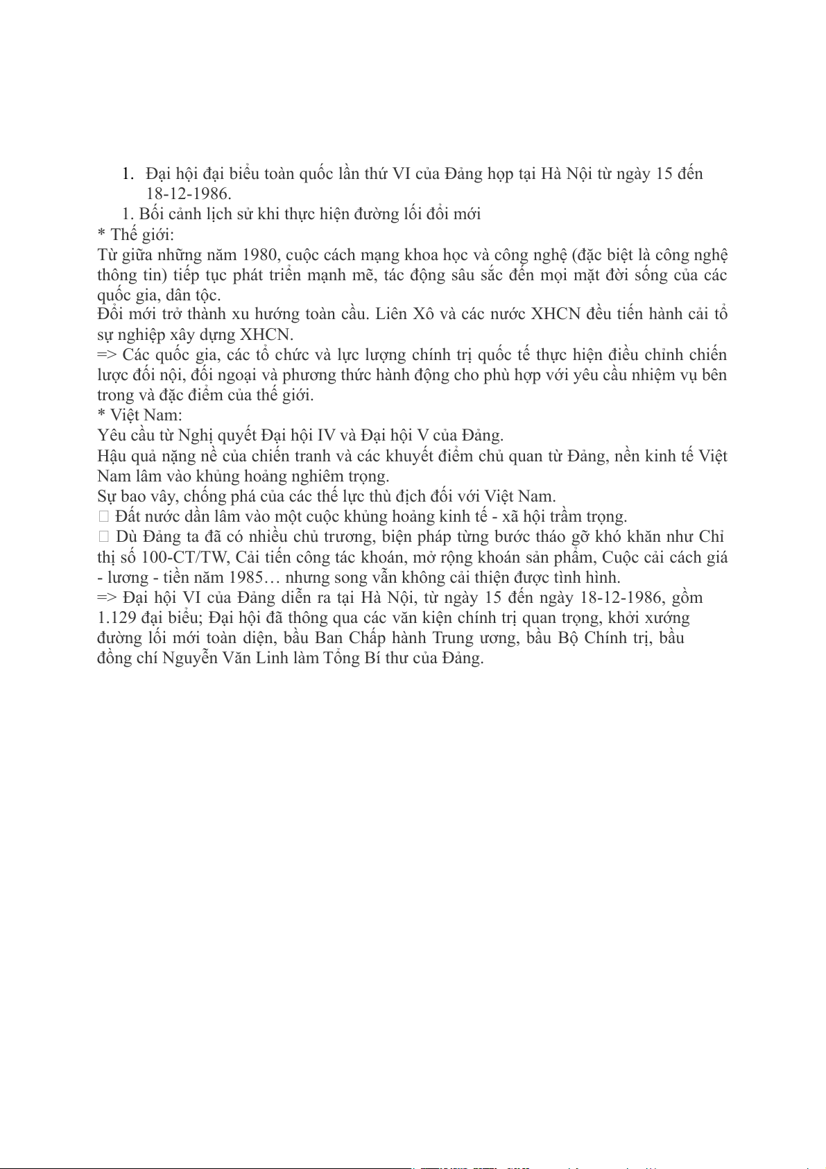 => Đại hội VI của Đảng diễn ra tại Hà Nội, từ ngày 15 đến ngày 18-12-1986, gồm